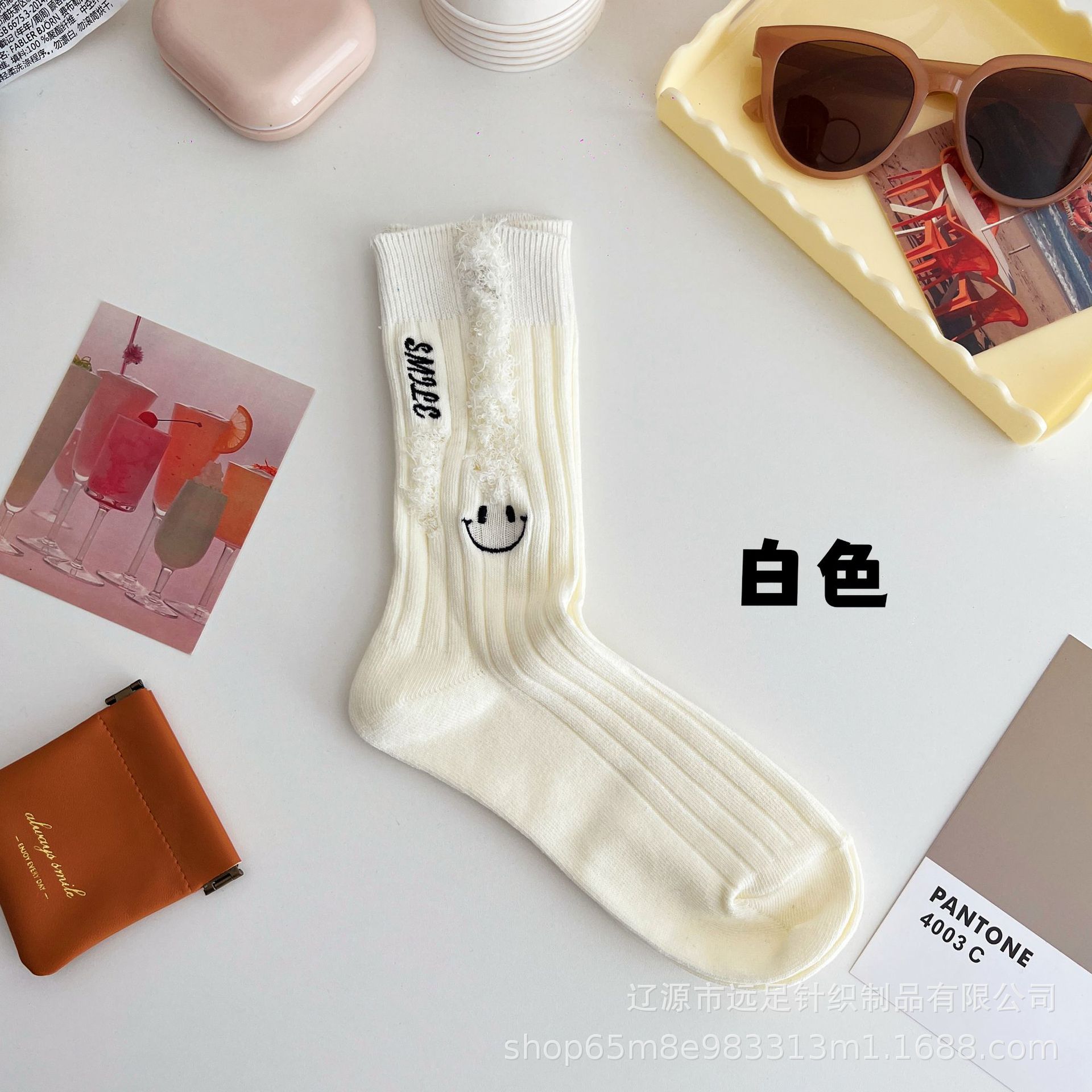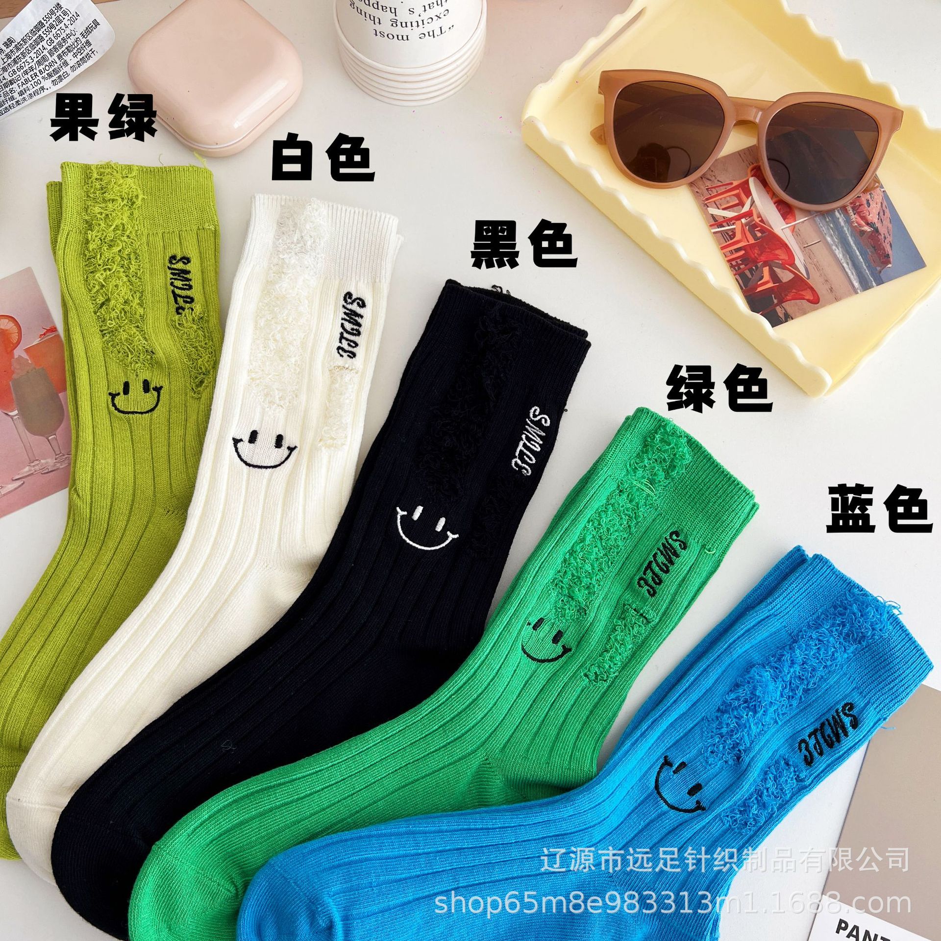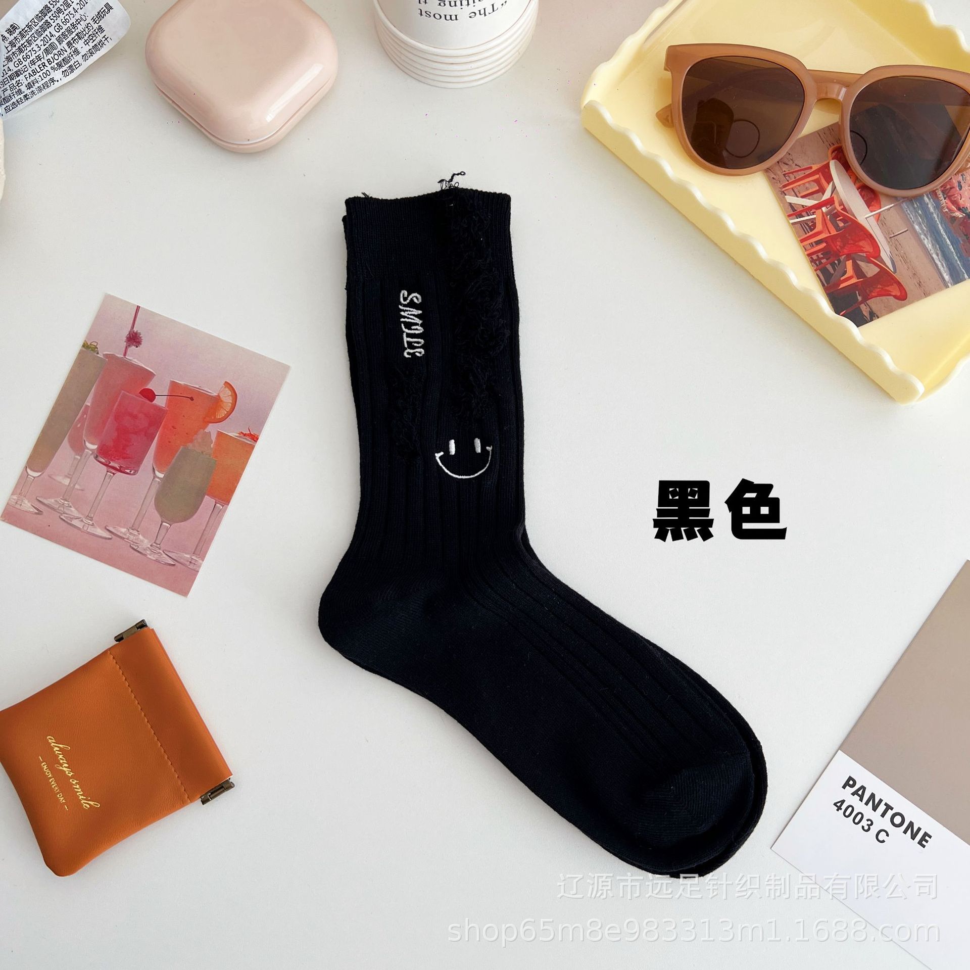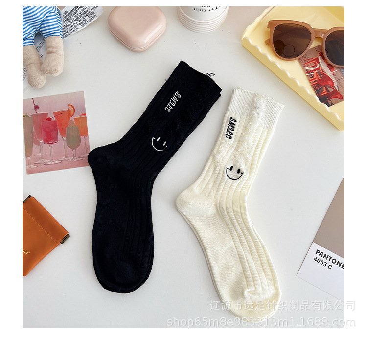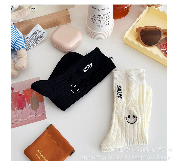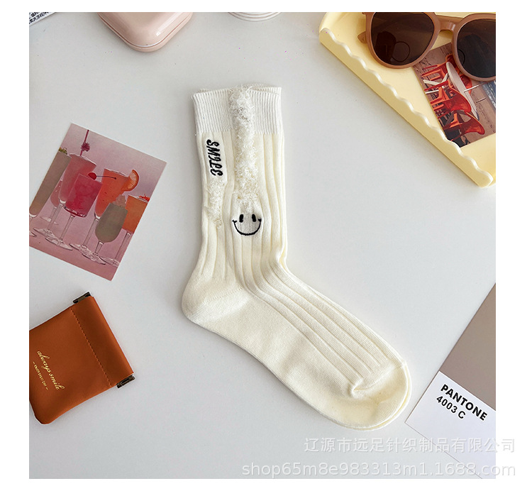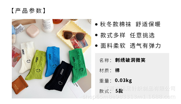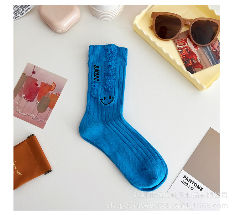 그물 빨간 자수 만화 웃는 얼굴 양말 여자 튜브 양말 한국어 인 컬러 구멍 거지 양말 머리카락 세대스토어 가기