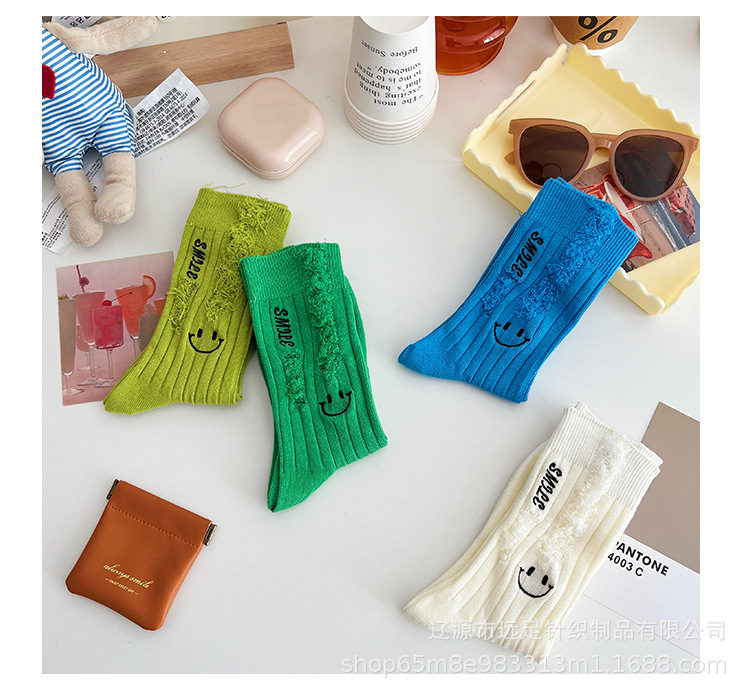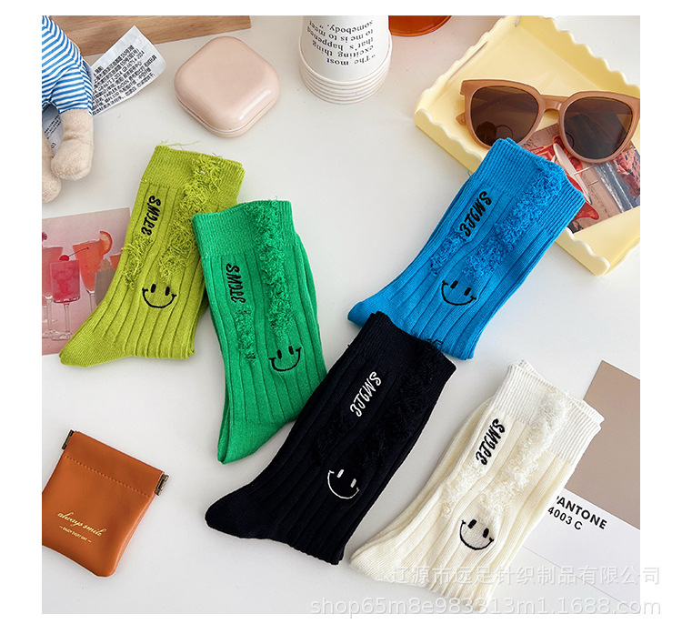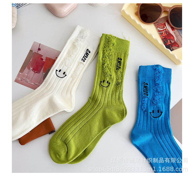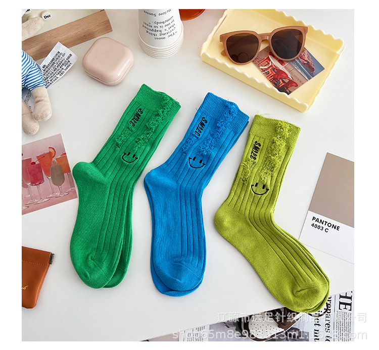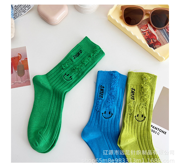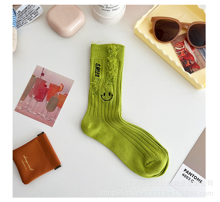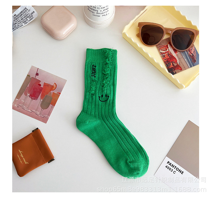 그물 빨간 자수 만화 웃는 얼굴 양말 여자 튜브 양말 한국어 인 컬러 구멍 거지 양말 머리카락 세대