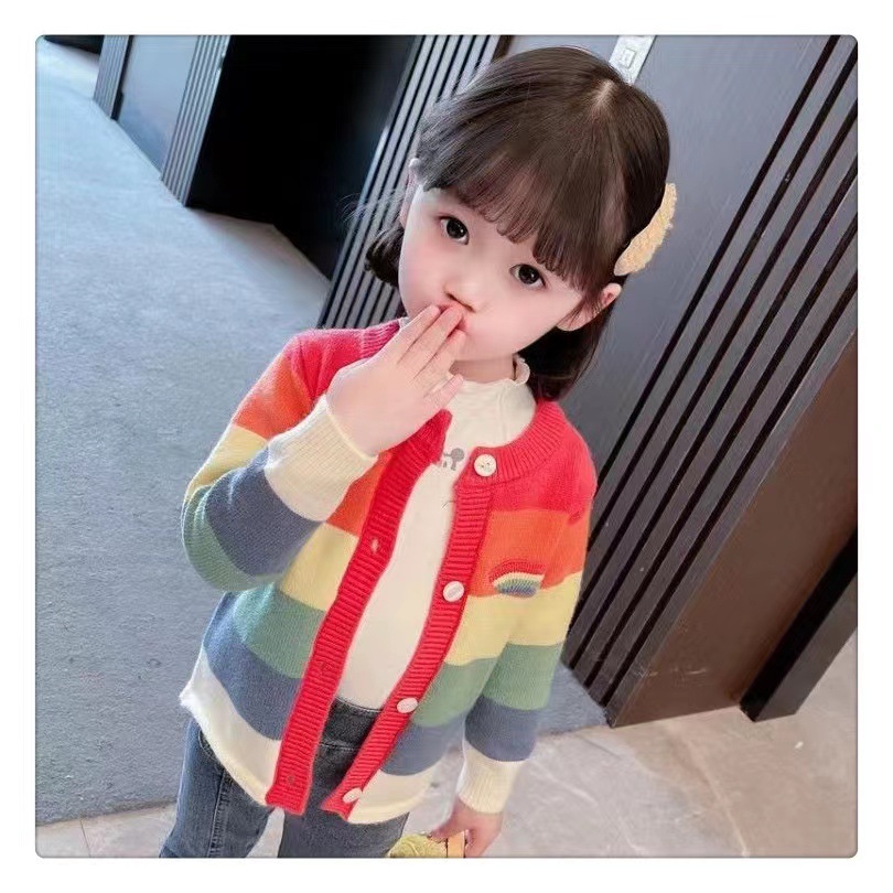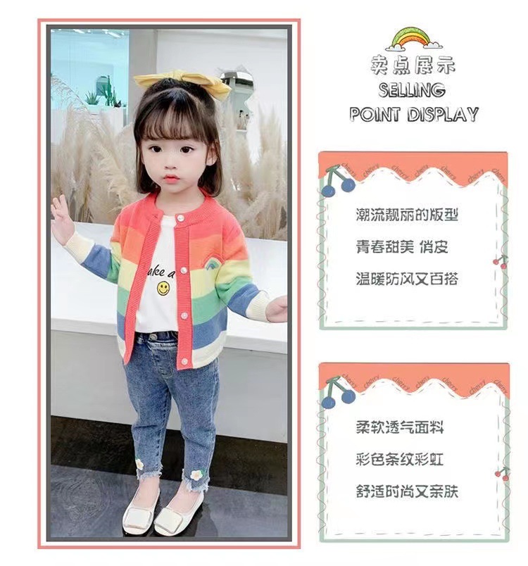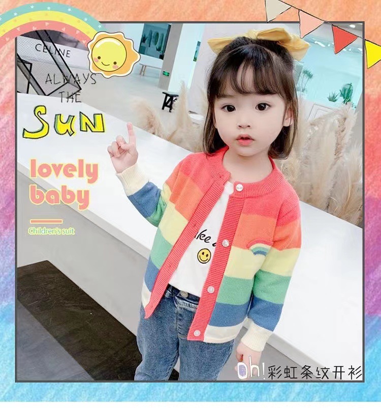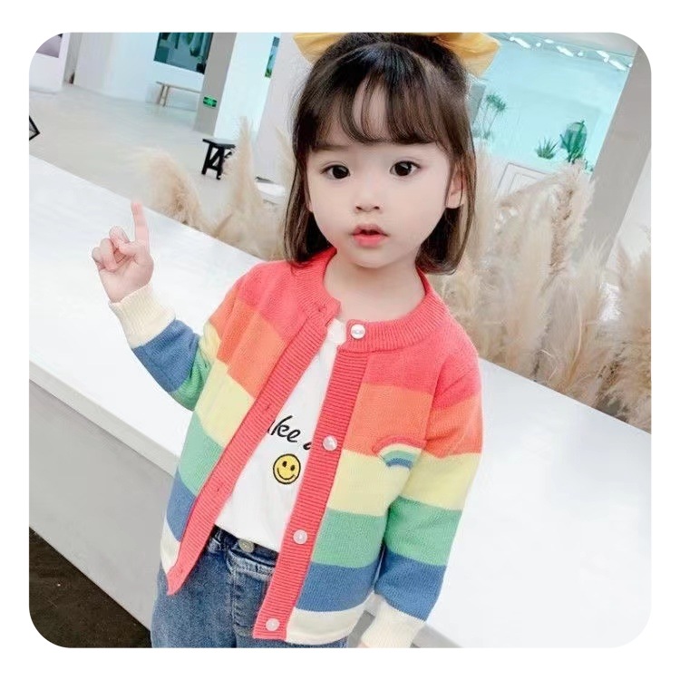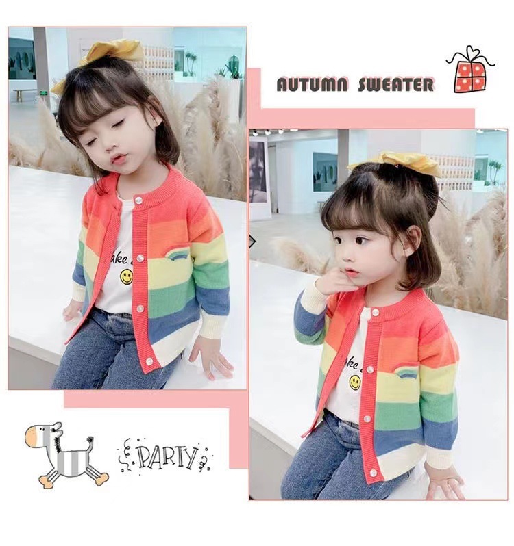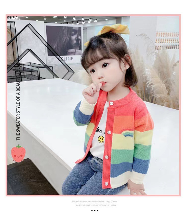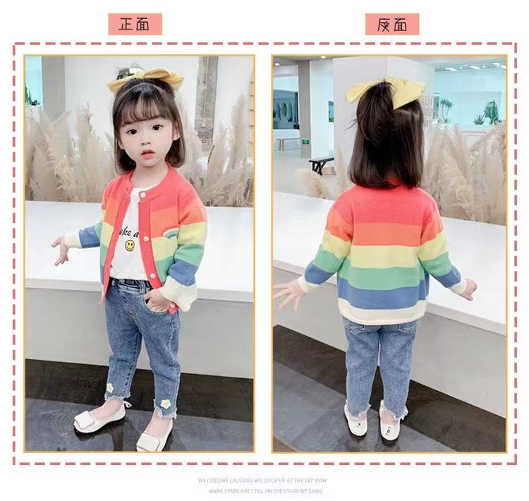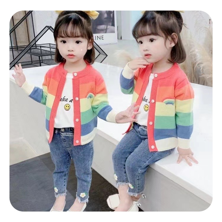 여자 봄과 가을 새로운 달콤한 공주 스타일 코트 세련된 아동 의류 무지개 니트 가디건 한국 얇은 스타일