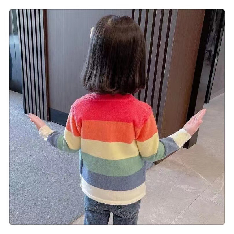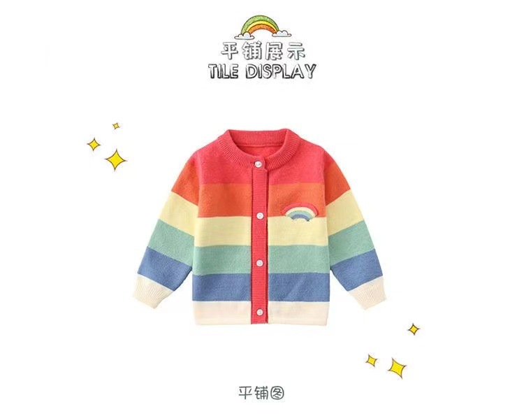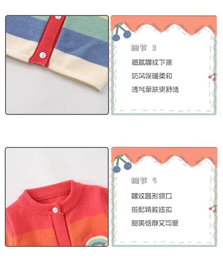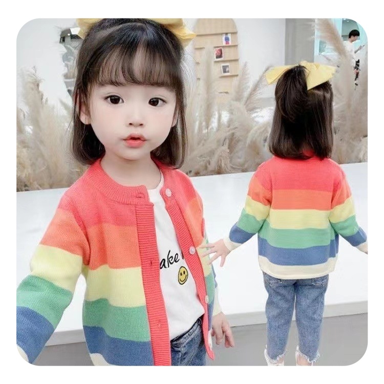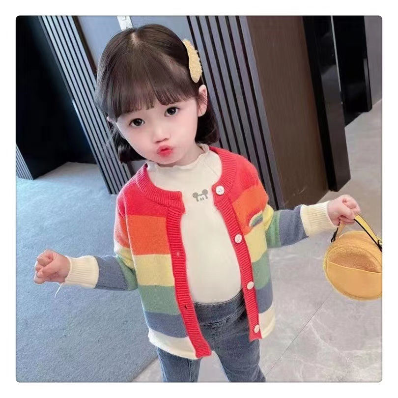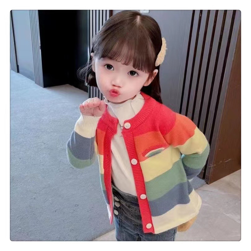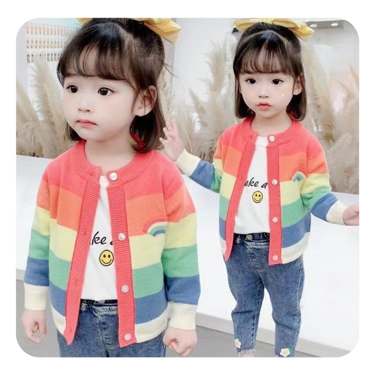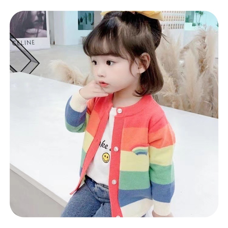여자 봄과 가을 새로운 달콤한 공주 스타일 코트 세련된 아동 의류 무지개 니트 가디건 한국 얇은 스타일