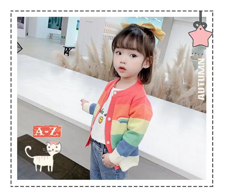 여자 봄과 가을 새로운 달콤한 공주 스타일 코트 세련된 아동 의류 무지개 니트 가디건 한국 얇은 스타일스토어 가기
