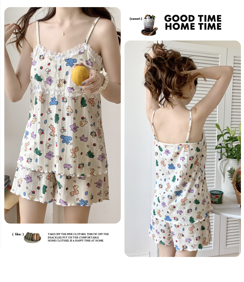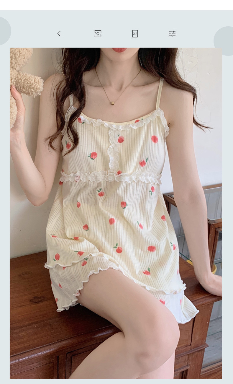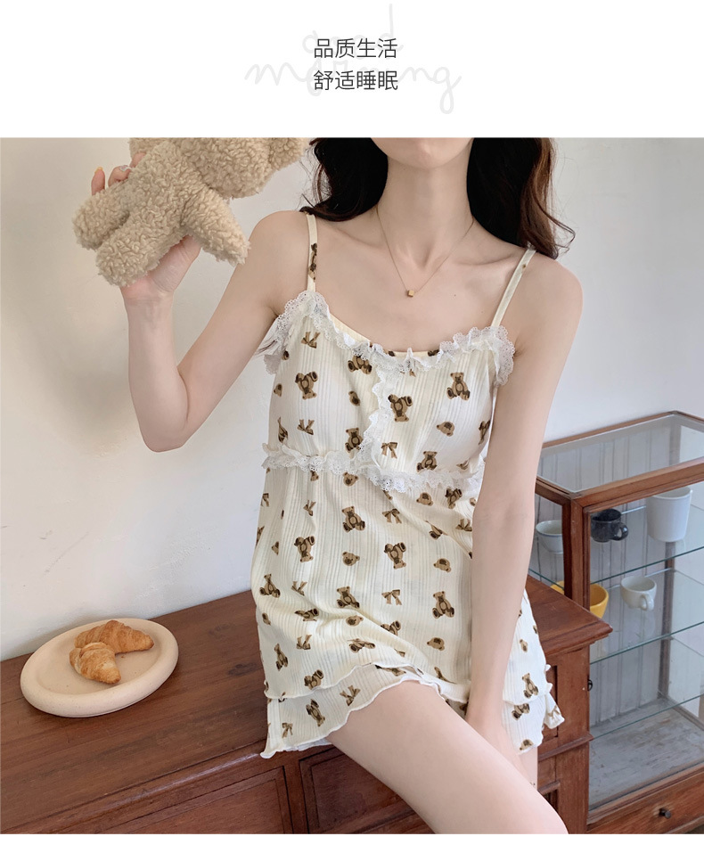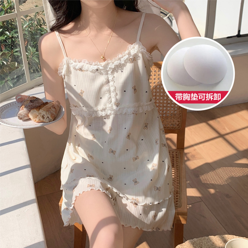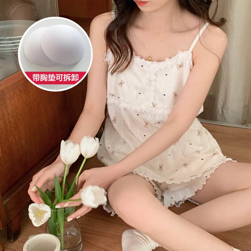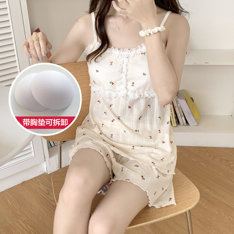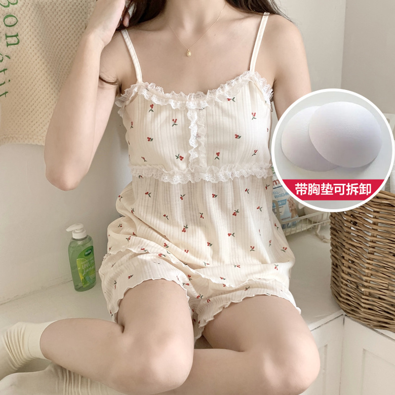 순면 잠옷 여자의 여름 슬링 잠옷 가슴 패드 이동식 순수한 욕망 스타일 달콤한 섹시한 Tiktok 같은 스타일 가정 옷스토어 가기