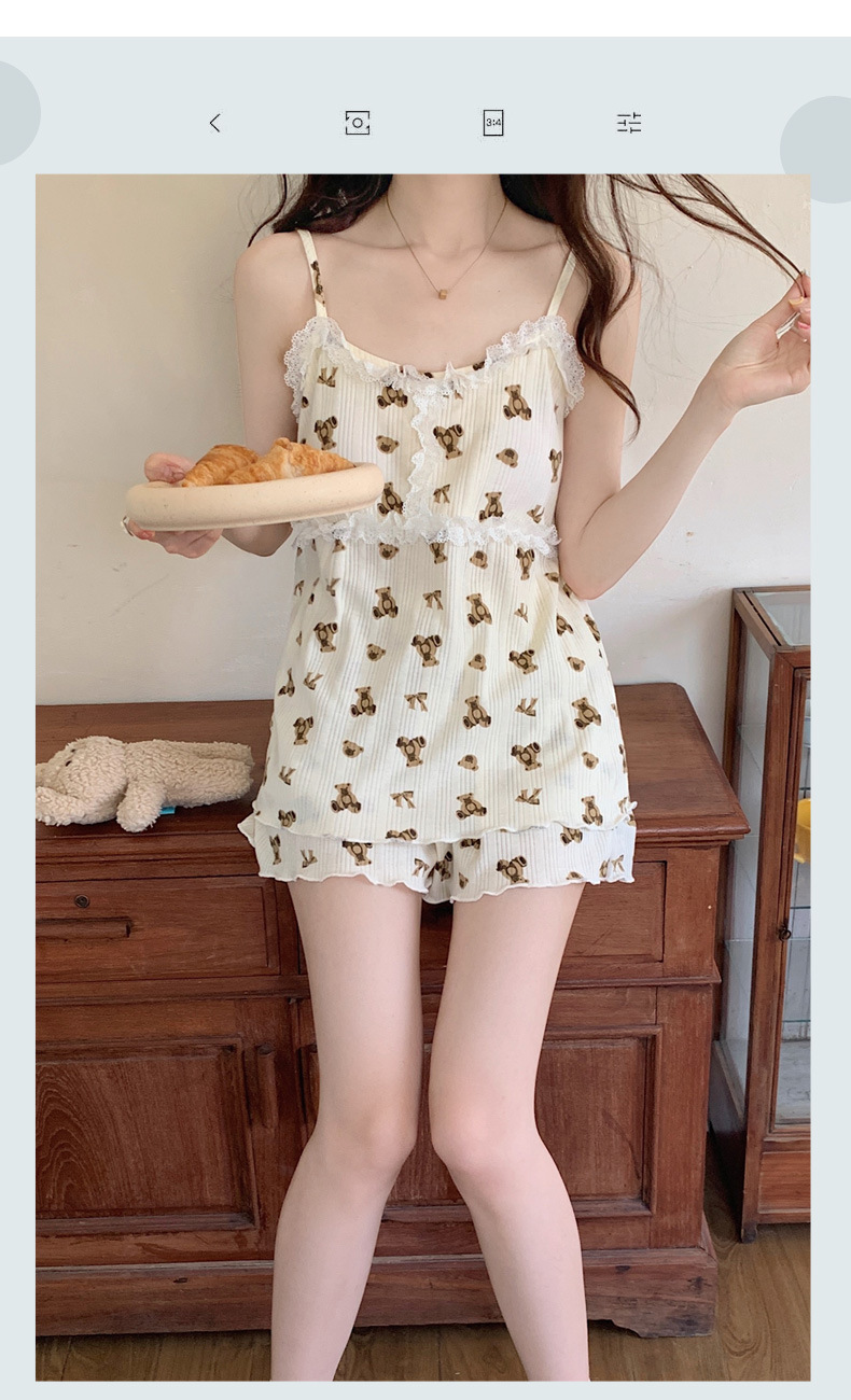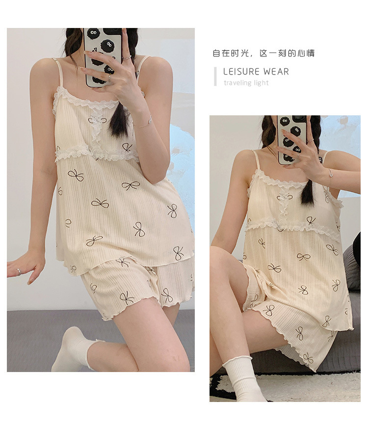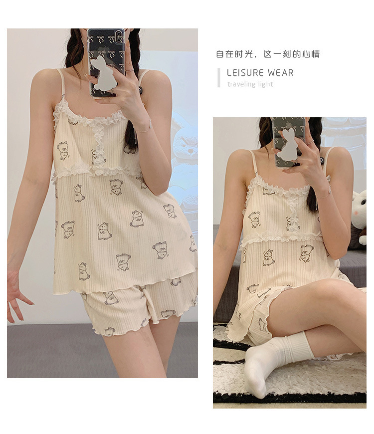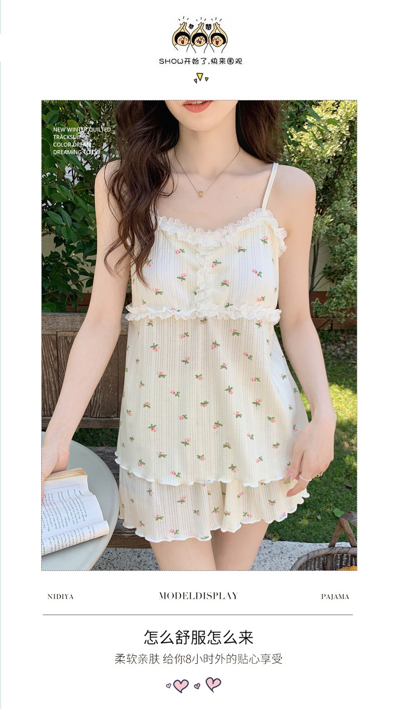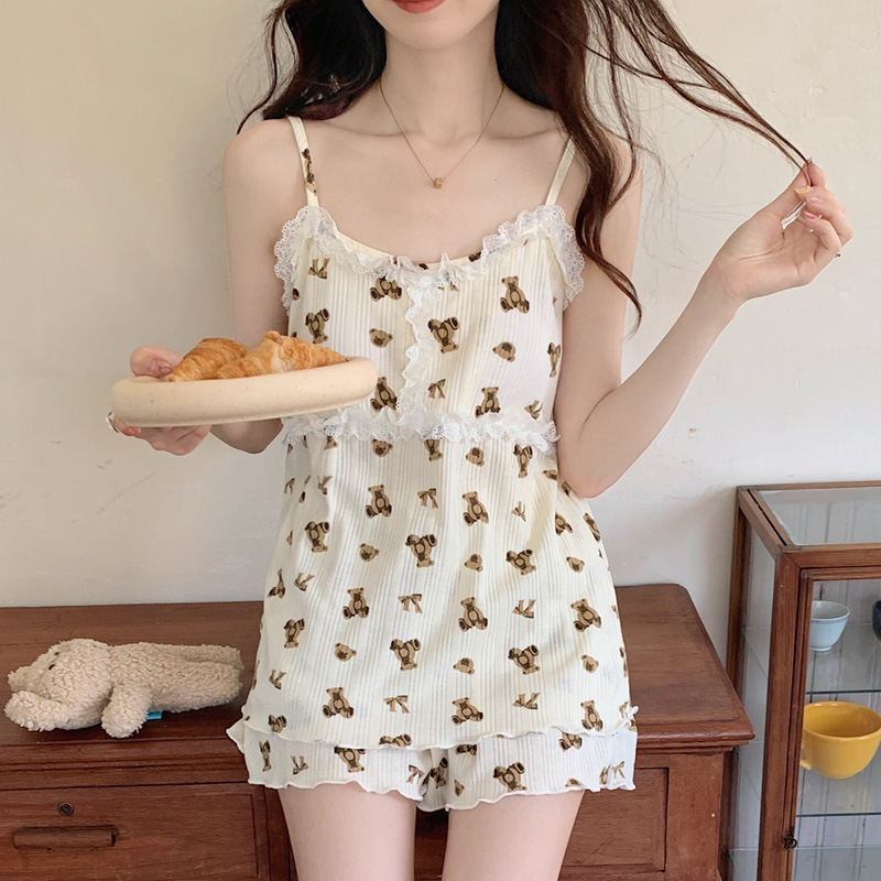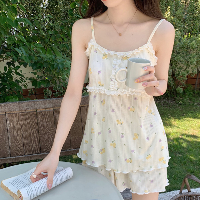 순면 잠옷 여자의 여름 슬링 잠옷 가슴 패드 이동식 순수한 욕망 스타일 달콤한 섹시한 Tiktok 같은 스타일 가정 옷스토어 가기