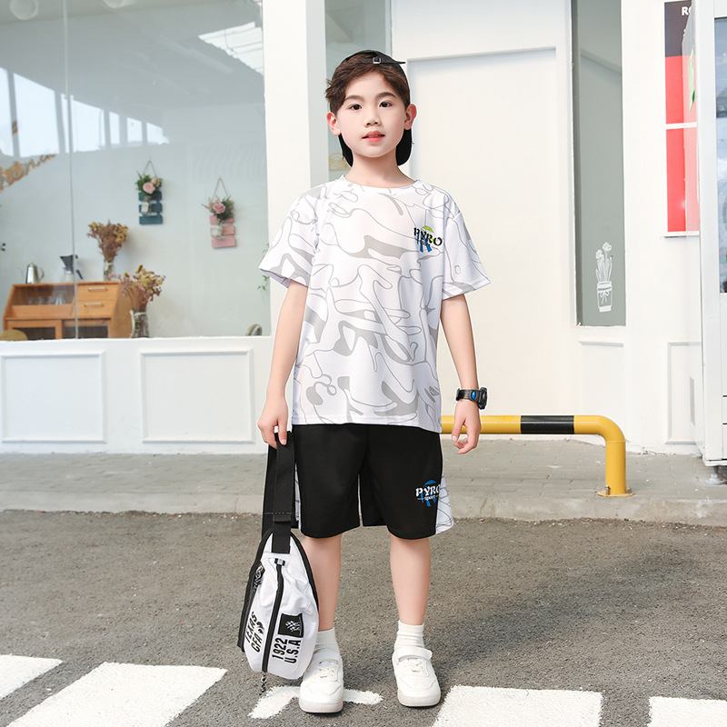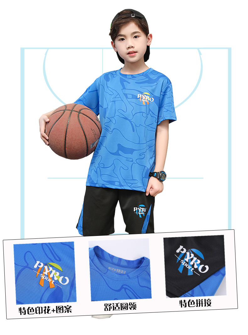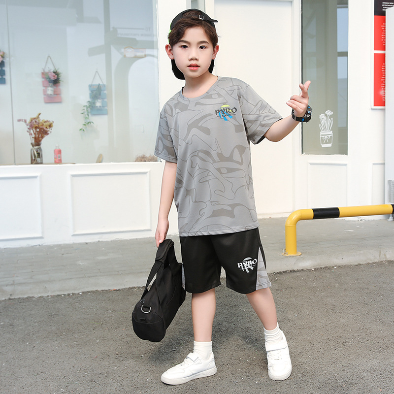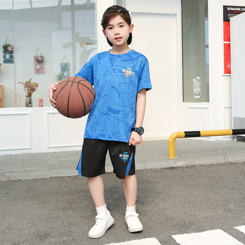소년 소녀 반팔 반바지 스포츠 세트 학교 훈련 세트 세트 어린이 여름 통기성 농구스토어 가기