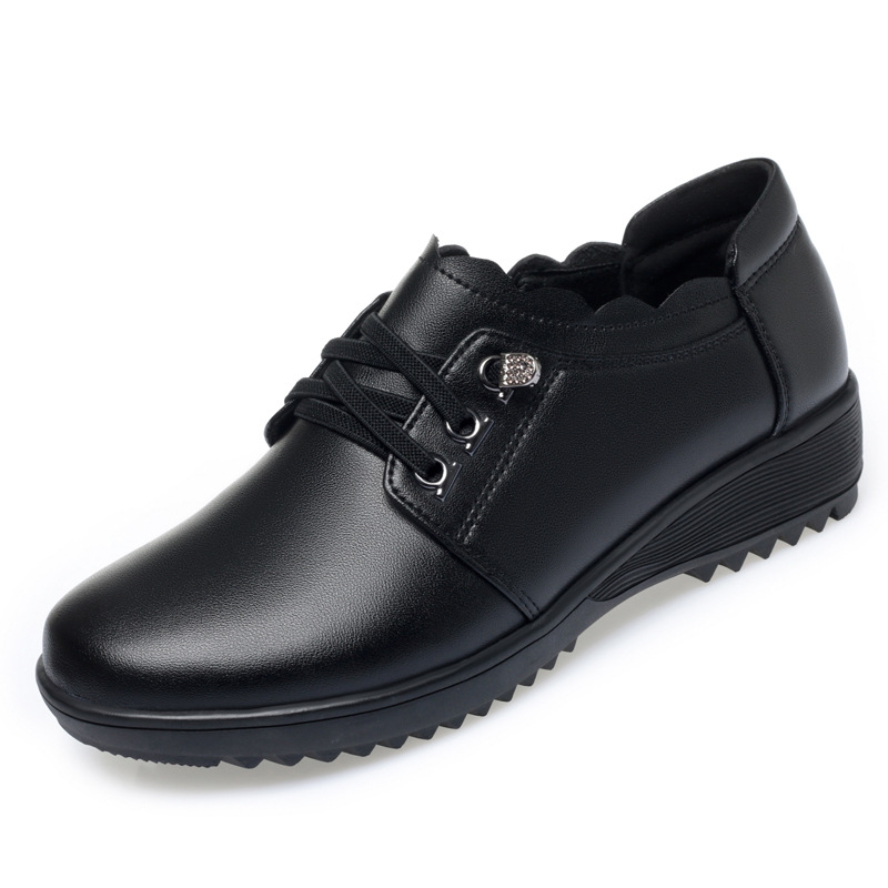 패션 새로운 정품 가죽 어머니 신발 단일 레이어 신발 봄과 가을 여성의 편안한 미끄럼 방지 부드러운 가죽 부드러운 바닥 기모 중년 및 노인 여성 신발스토어 가기