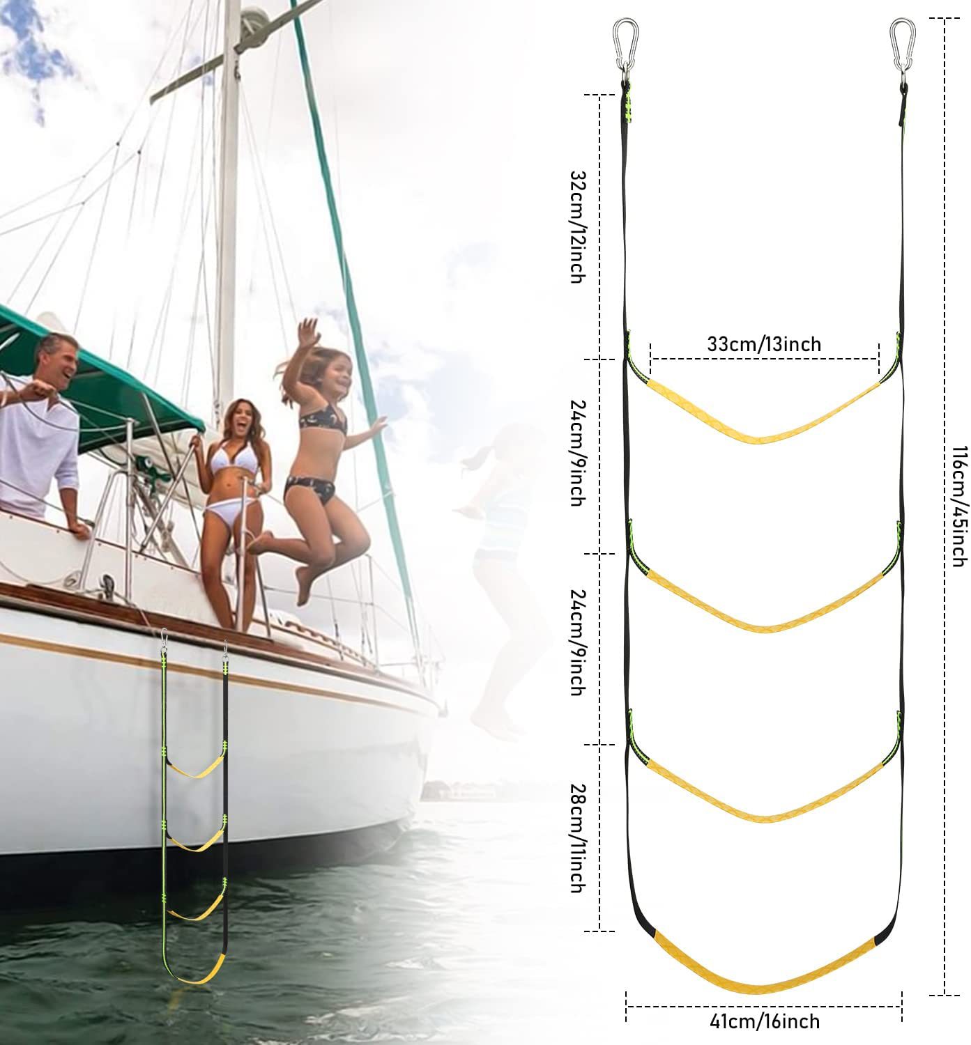 아마존 고무보트 전용 승선용 소프트 사다리, 풍선보트 착륙 사다리, 접이식 걸이식 사다리, 카약 보트 측면 사다리