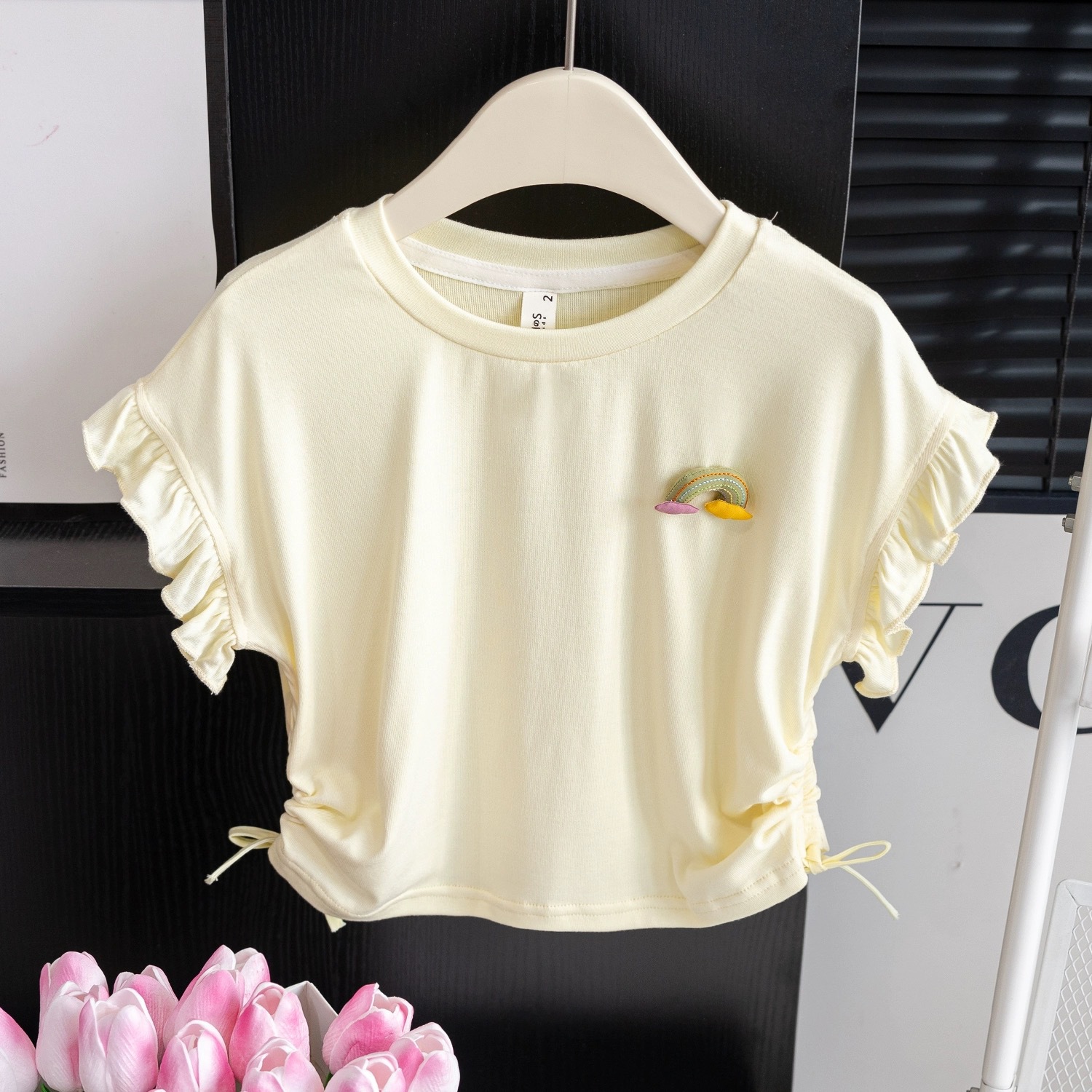여아 면 티셔츠 새로운 여름 옷 어린이 반팔 캐주얼 아동복 서양 스타일 아기 소녀의 반팔 아동베이스 셔츠