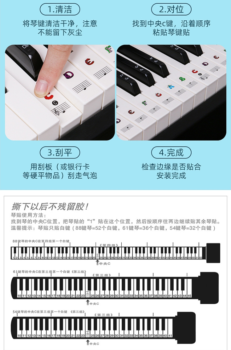 88 키 61 키 54 키 투명 어린이 만화 5 라인 스펙트럼 간단한 스펙트럼 어린이 성인 피아노 전자 오르간 키보드 스티커스토어 가기