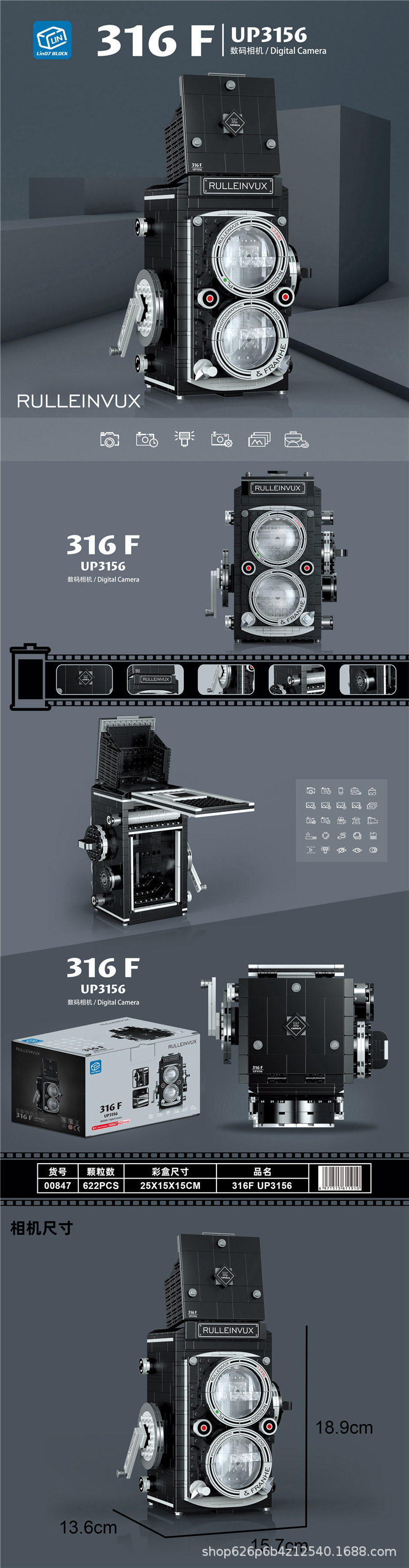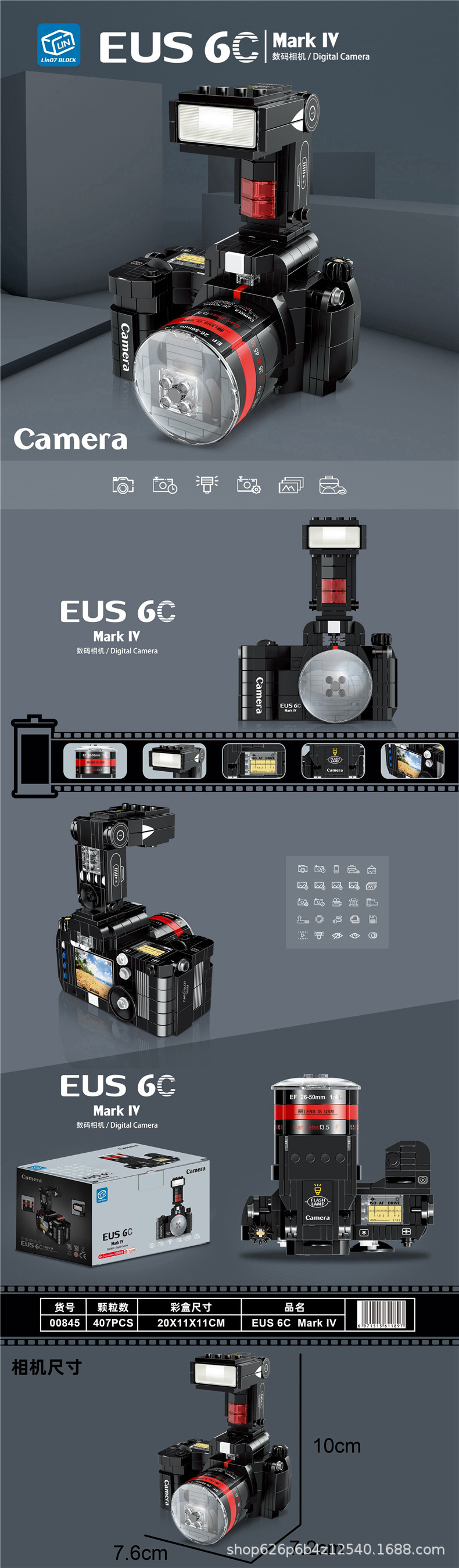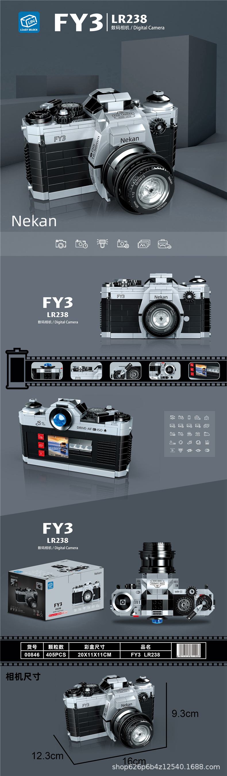 Zhegao 00844-00908 레트로 시뮬레이션 디지털 카메라 빌딩 블록 모델 교육 조립 어린이 장난감 선물