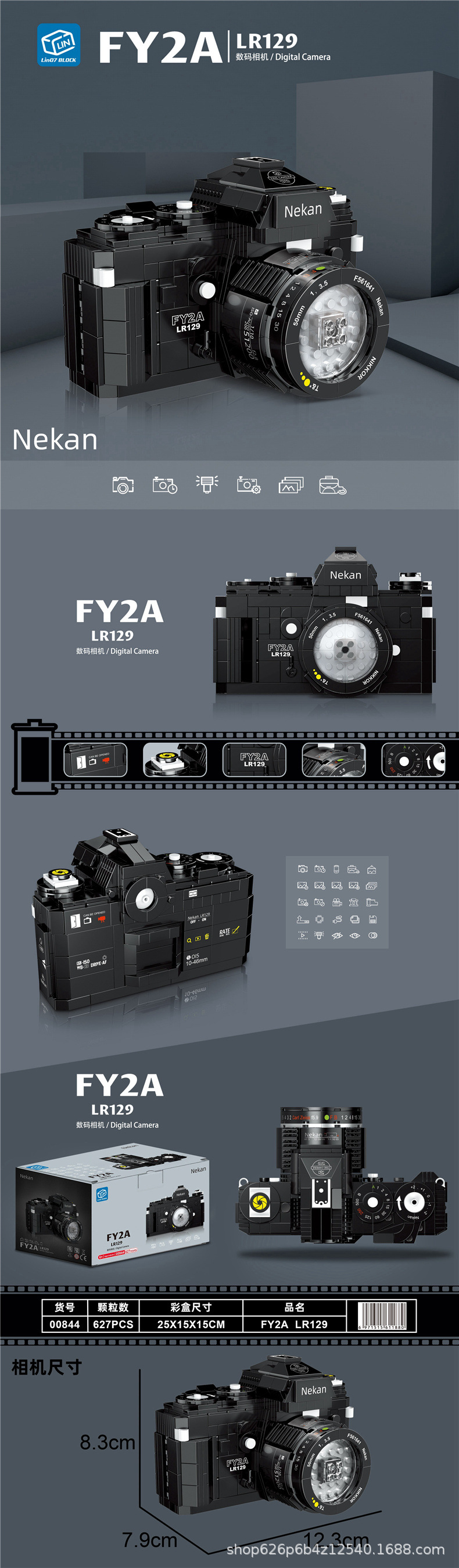 Zhegao 00844-00908 레트로 시뮬레이션 디지털 카메라 빌딩 블록 모델 교육 조립 어린이 장난감 선물스토어 가기