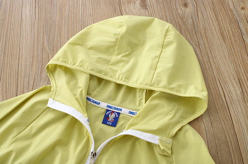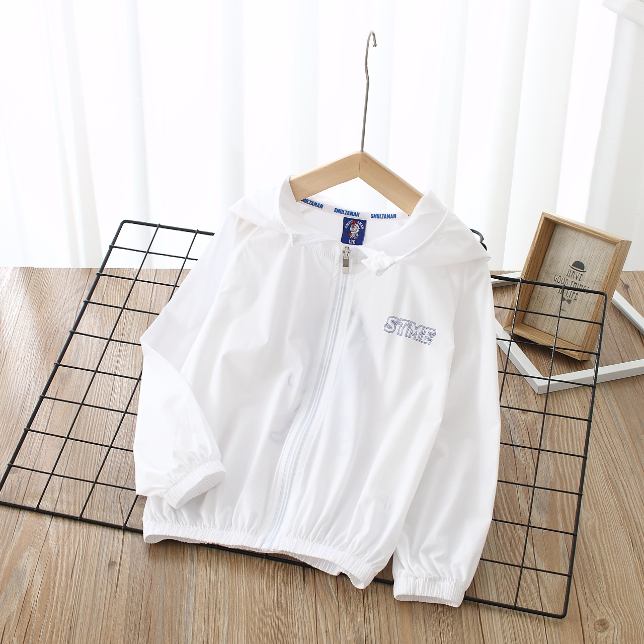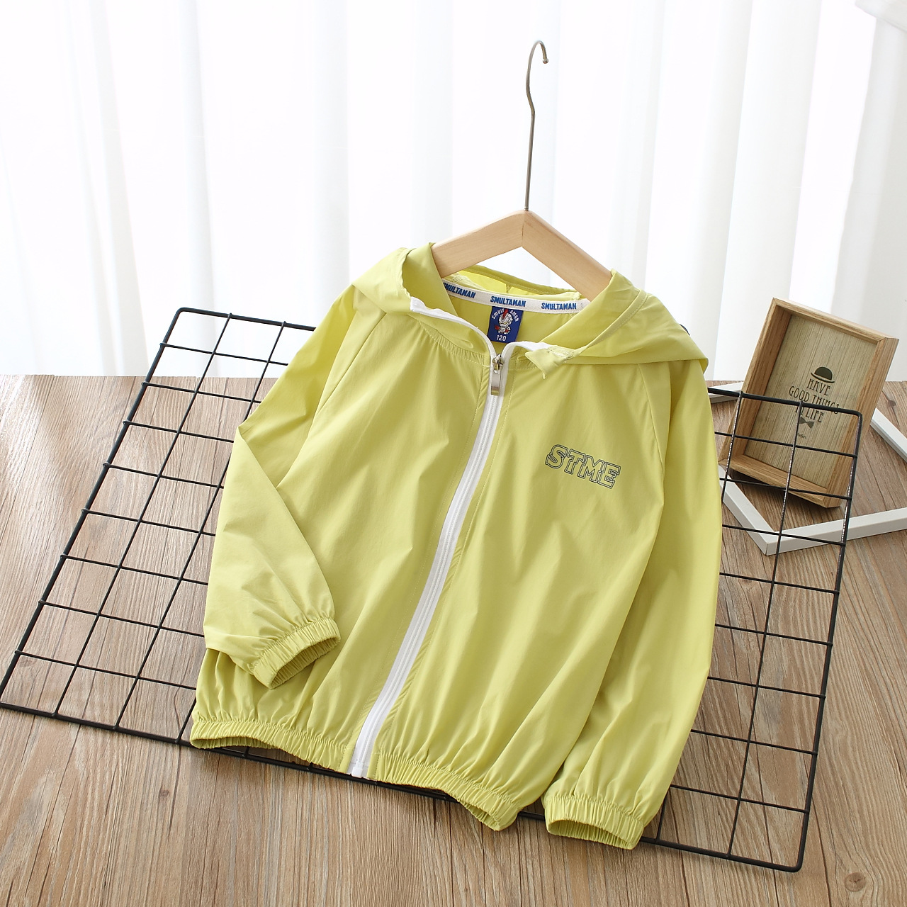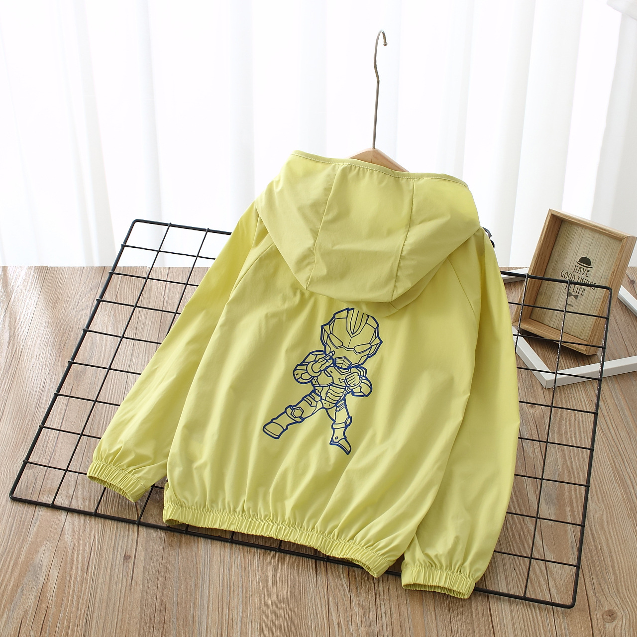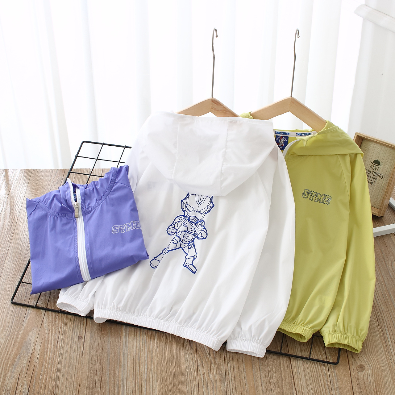 여름 새로운 소년 단색 다시 인쇄 된 후드 얇은 재킷 큰 아이들을위한 모든 경기 만화 스트레치 스킨 옷스토어 가기