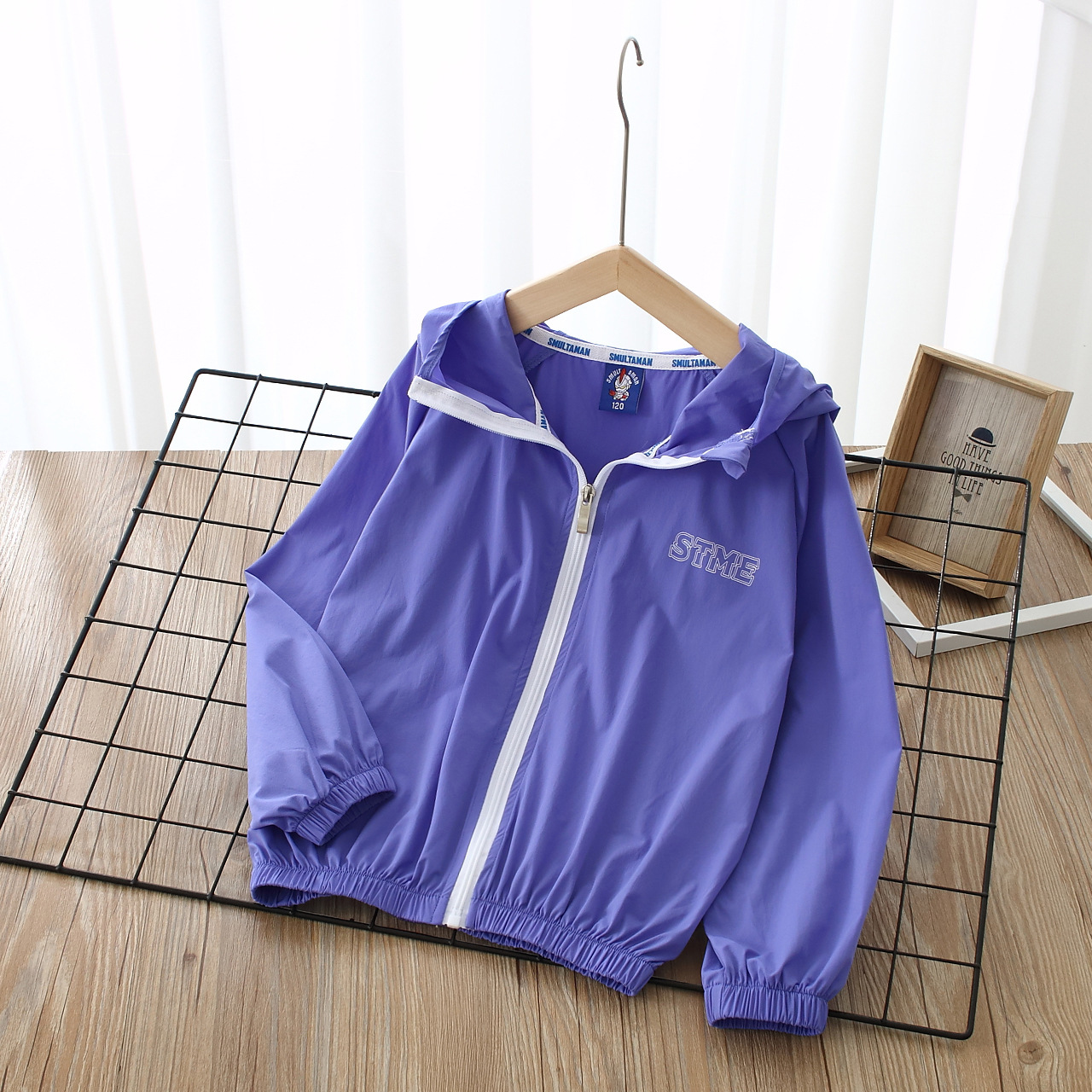 여름 새로운 소년 단색 다시 인쇄 된 후드 얇은 재킷 큰 아이들을위한 모든 경기 만화 스트레치 스킨 옷