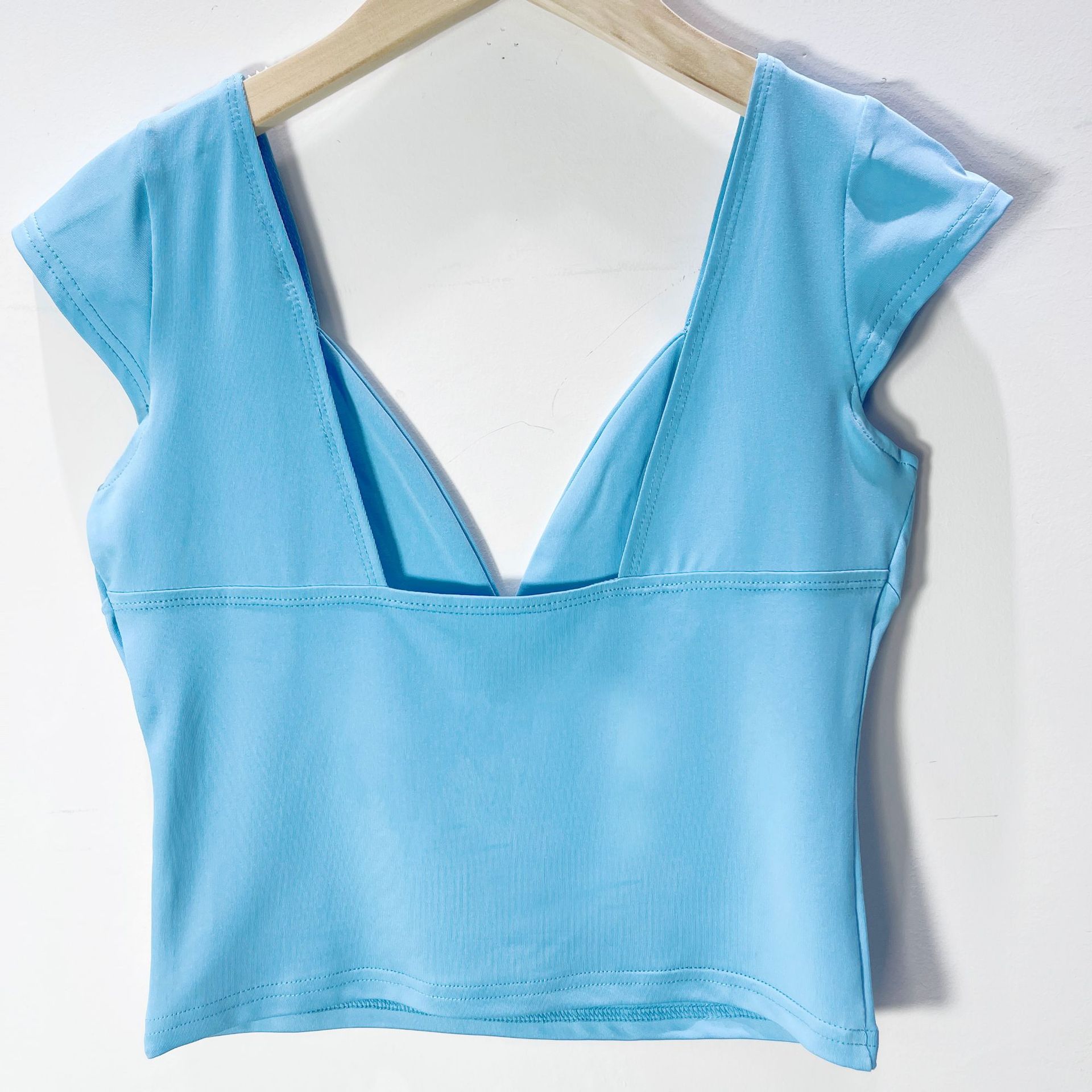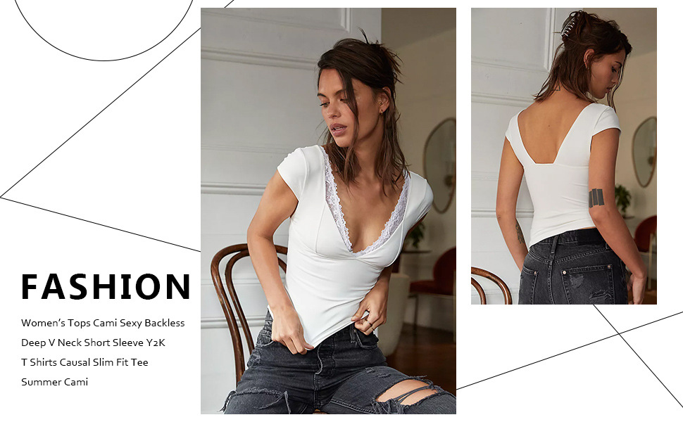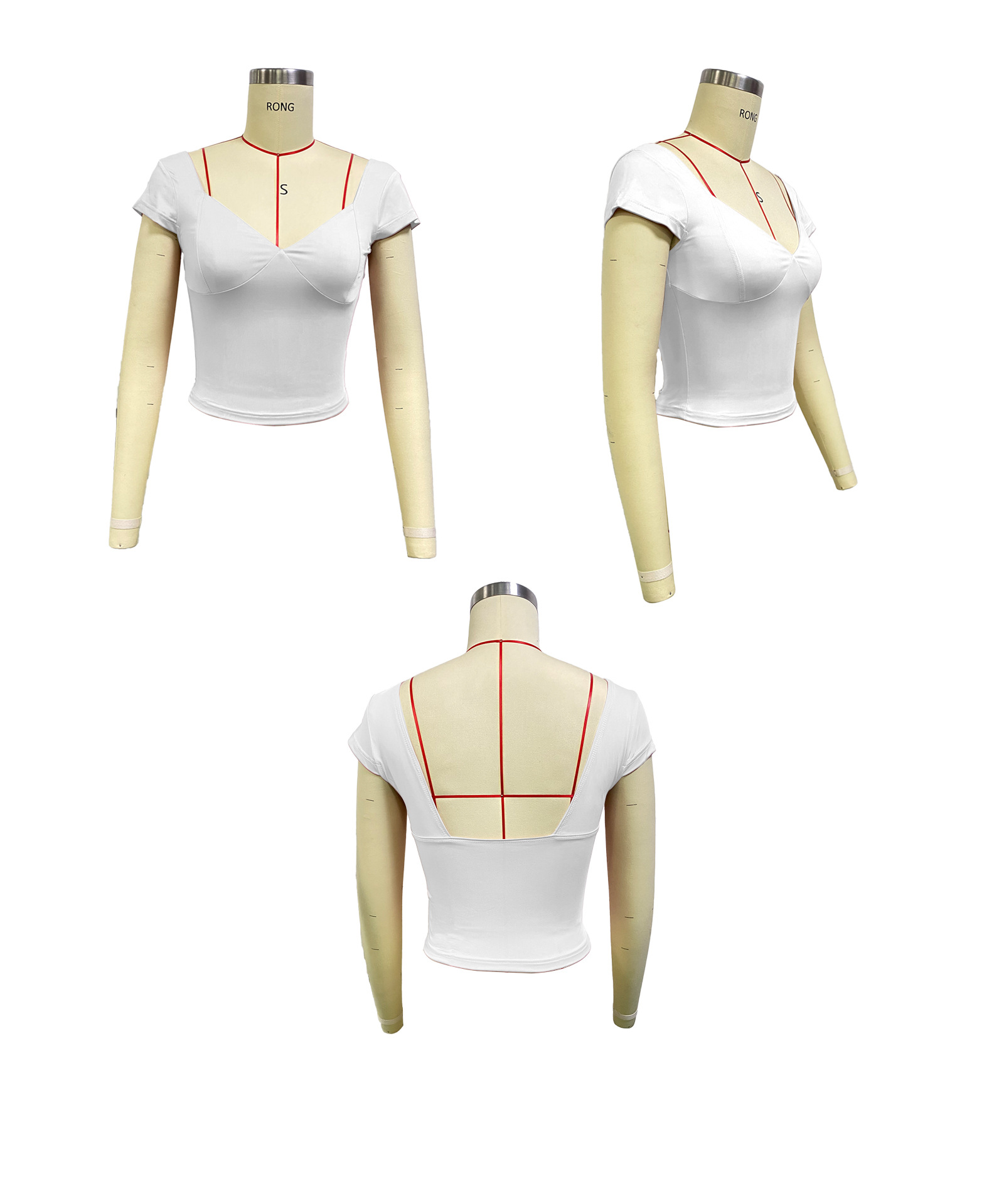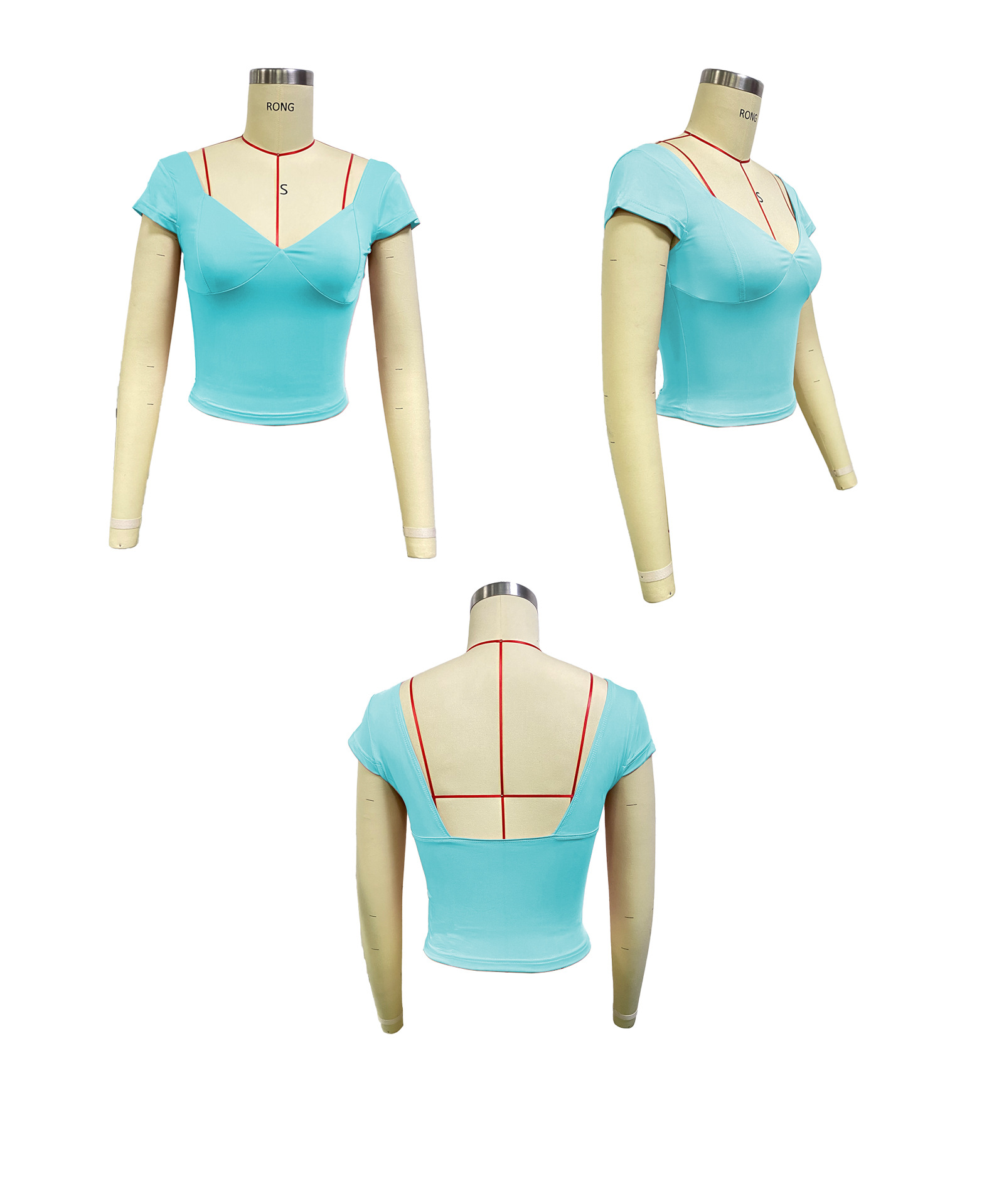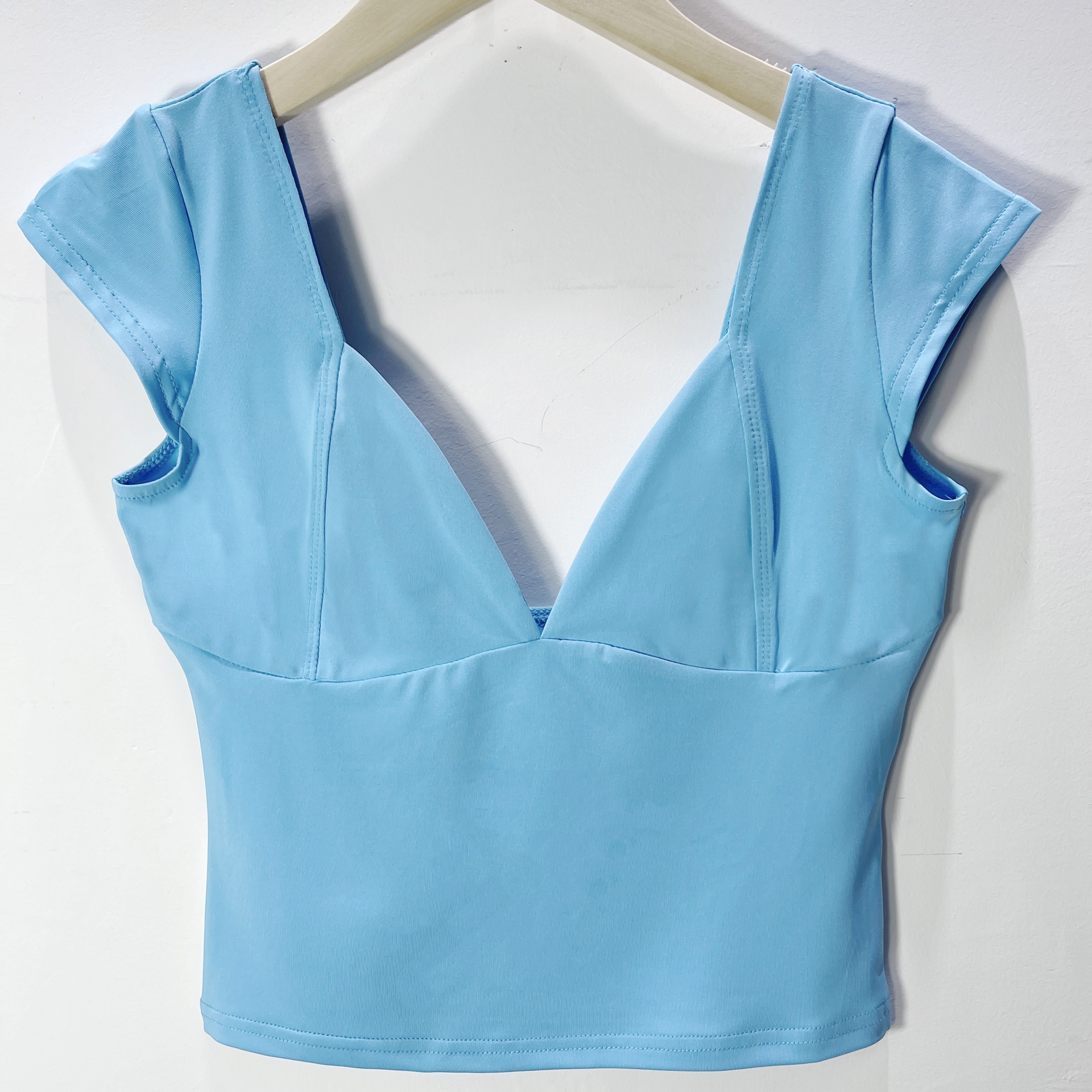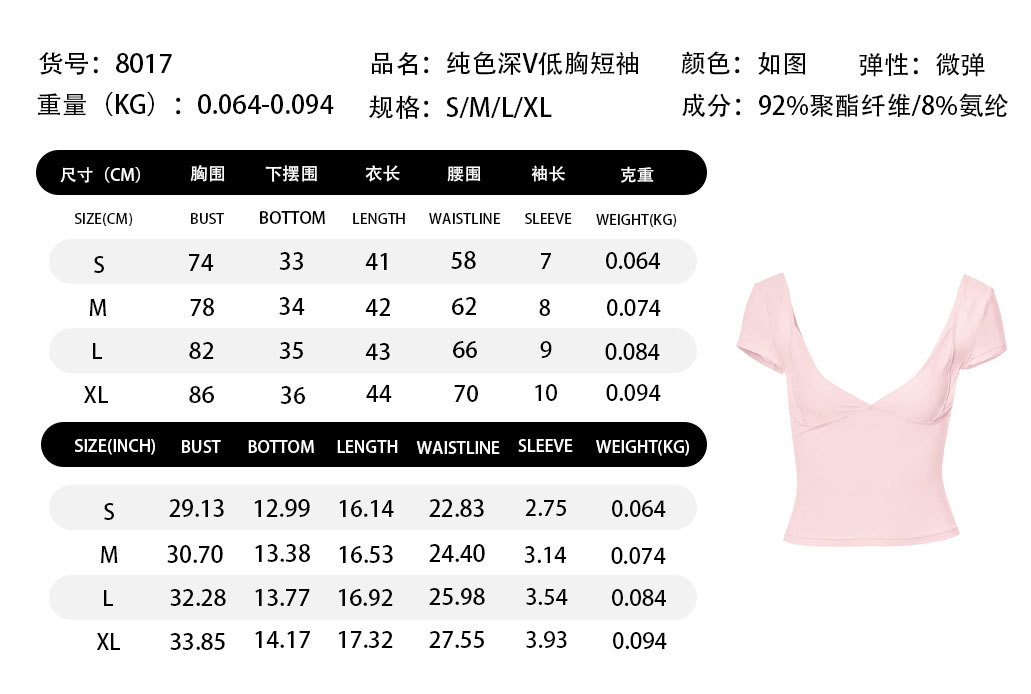 해외 무역 아마존 Y2K 의류 크로스보더 여성복 브이넥 로우컷 섹시한 탑 단색 슬림핏 티셔츠 반팔스토어 가기