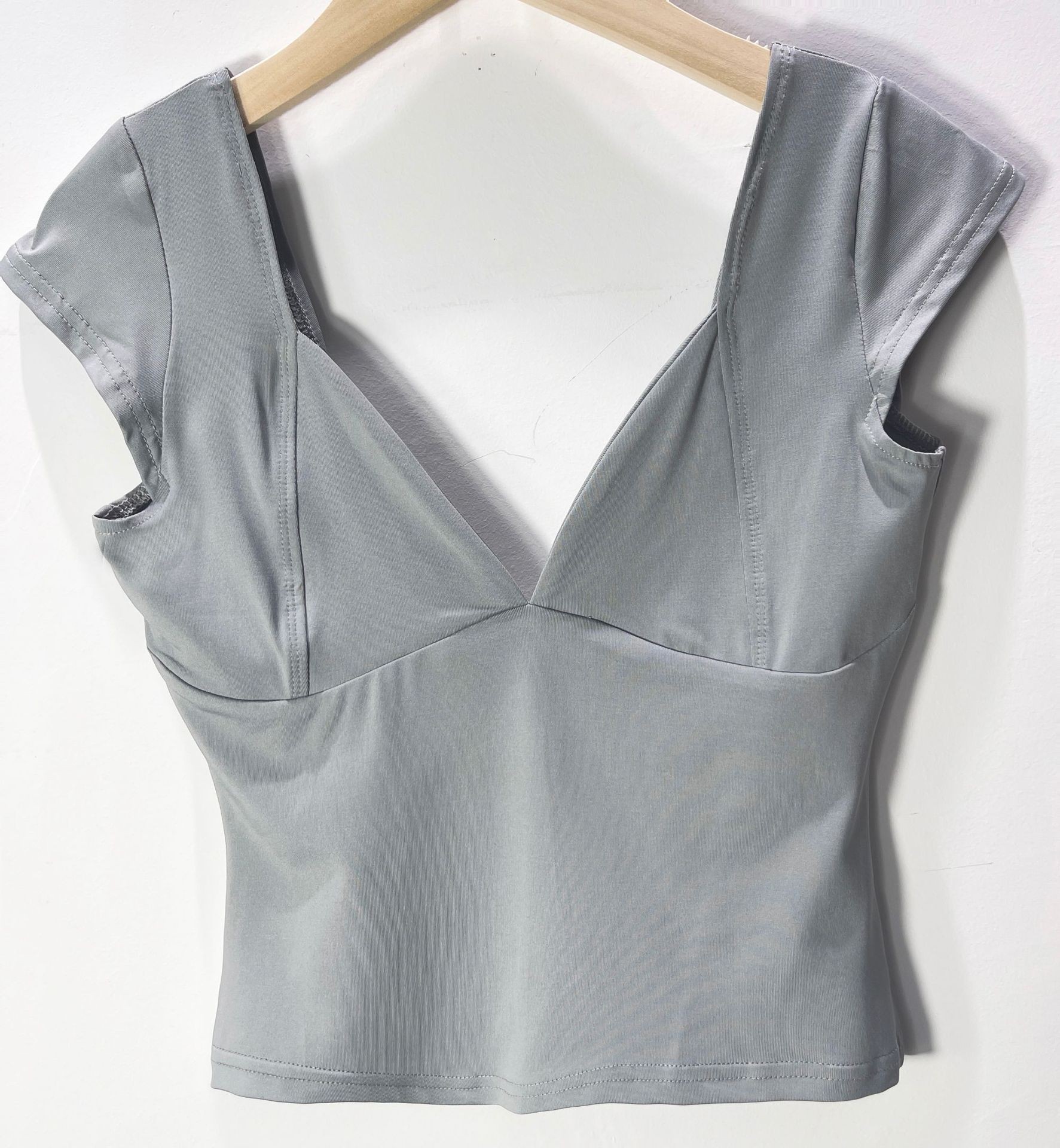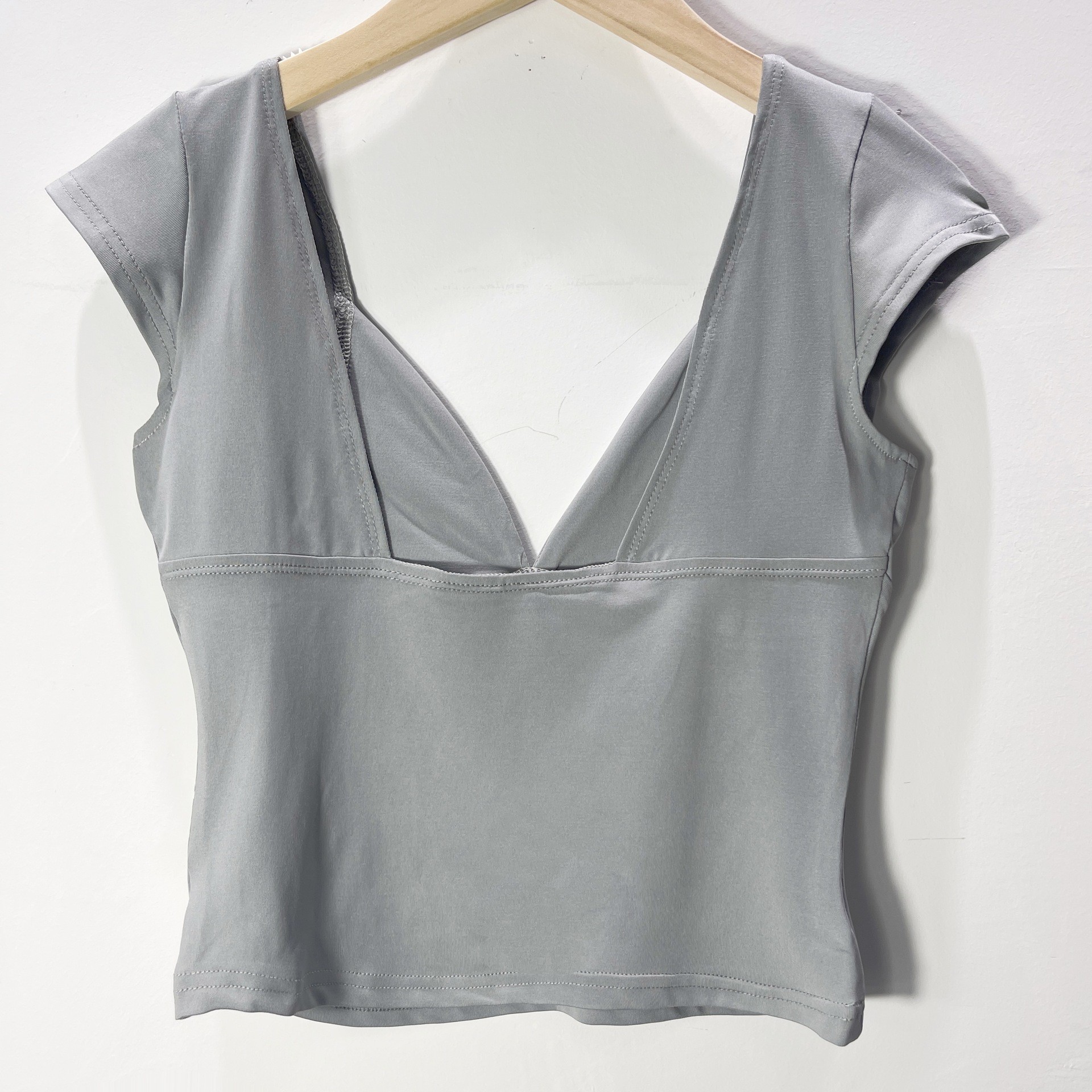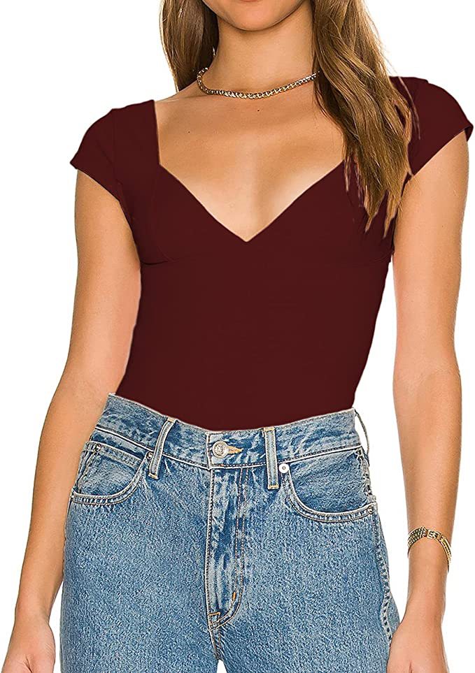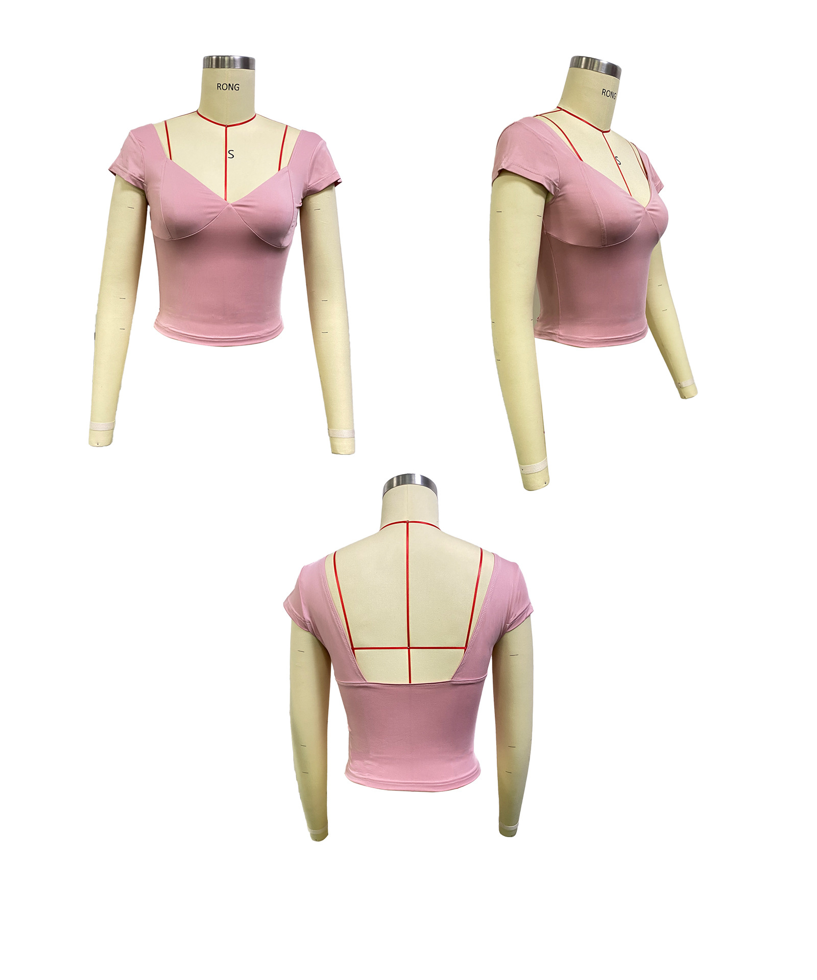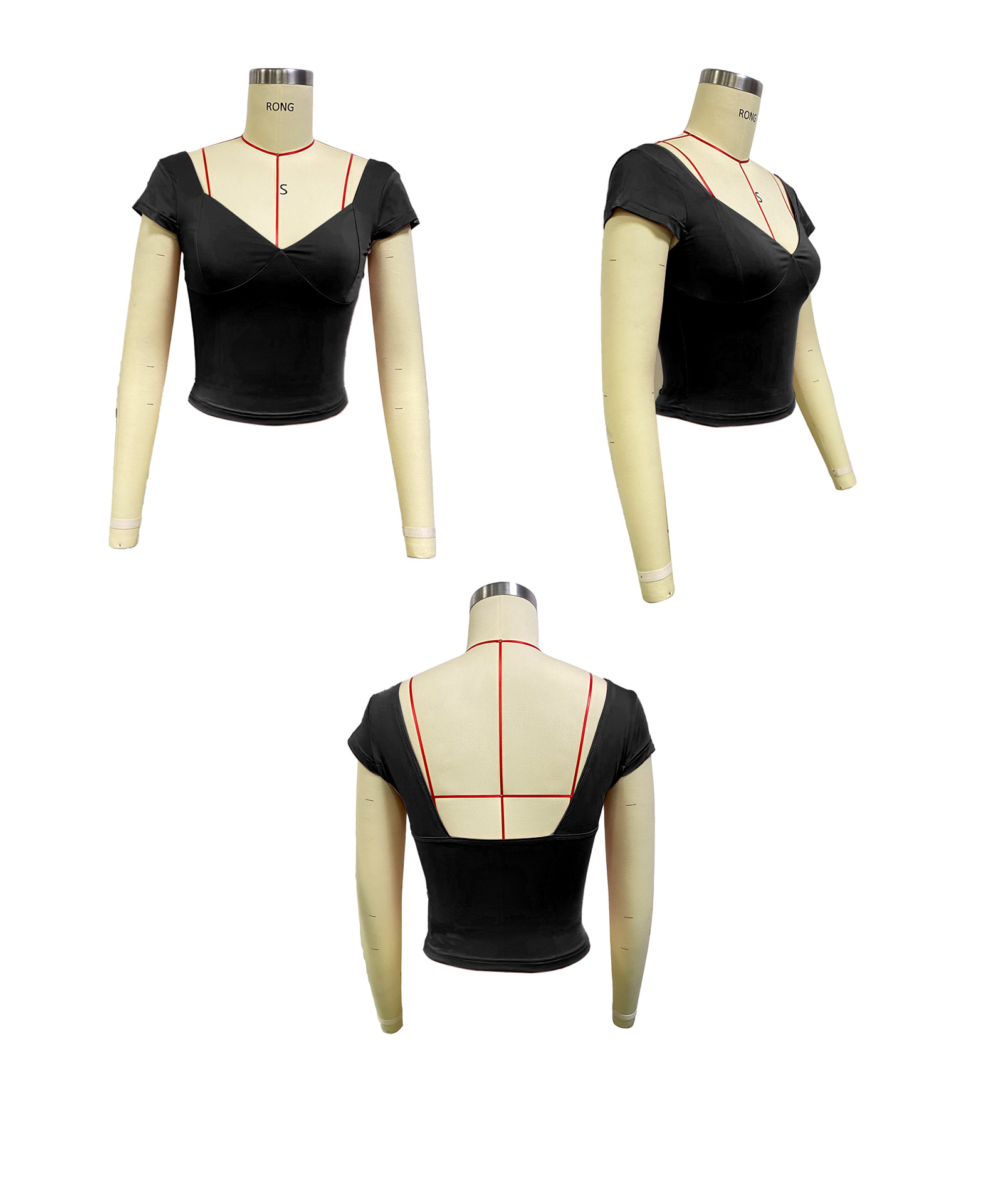 해외 무역 아마존 Y2K 의류 크로스보더 여성복 브이넥 로우컷 섹시한 탑 단색 슬림핏 티셔츠 반팔스토어 가기