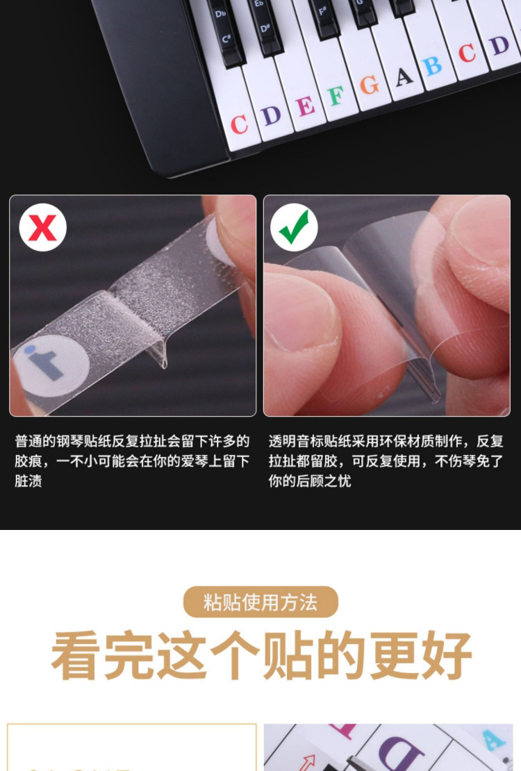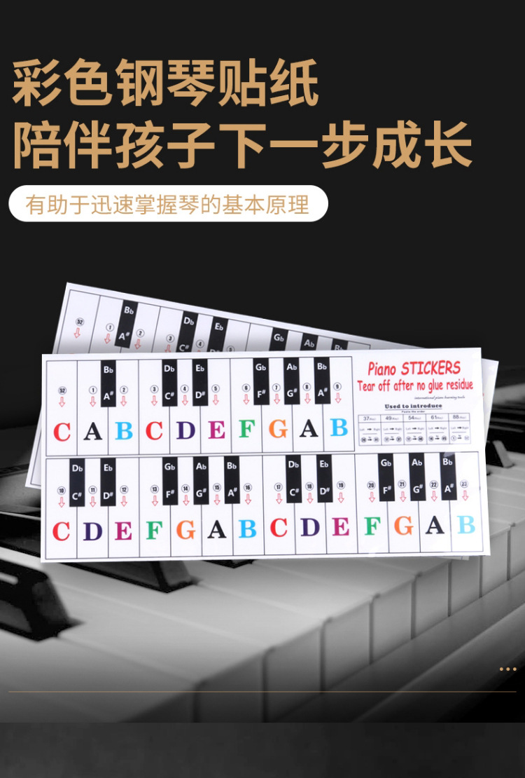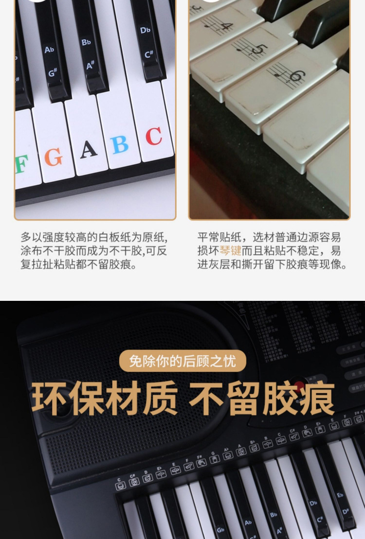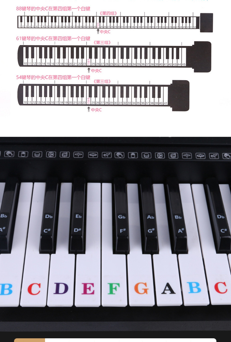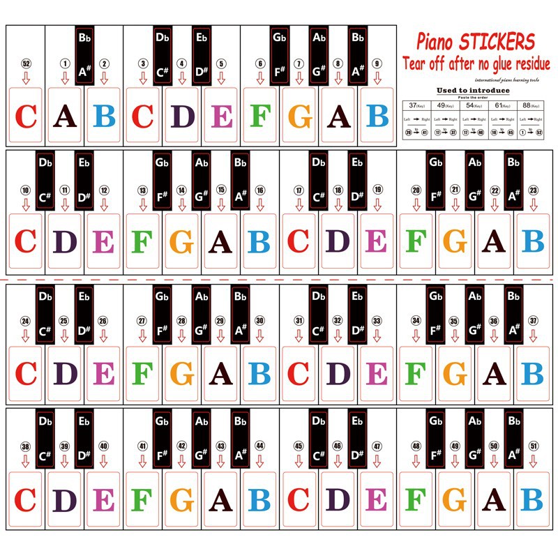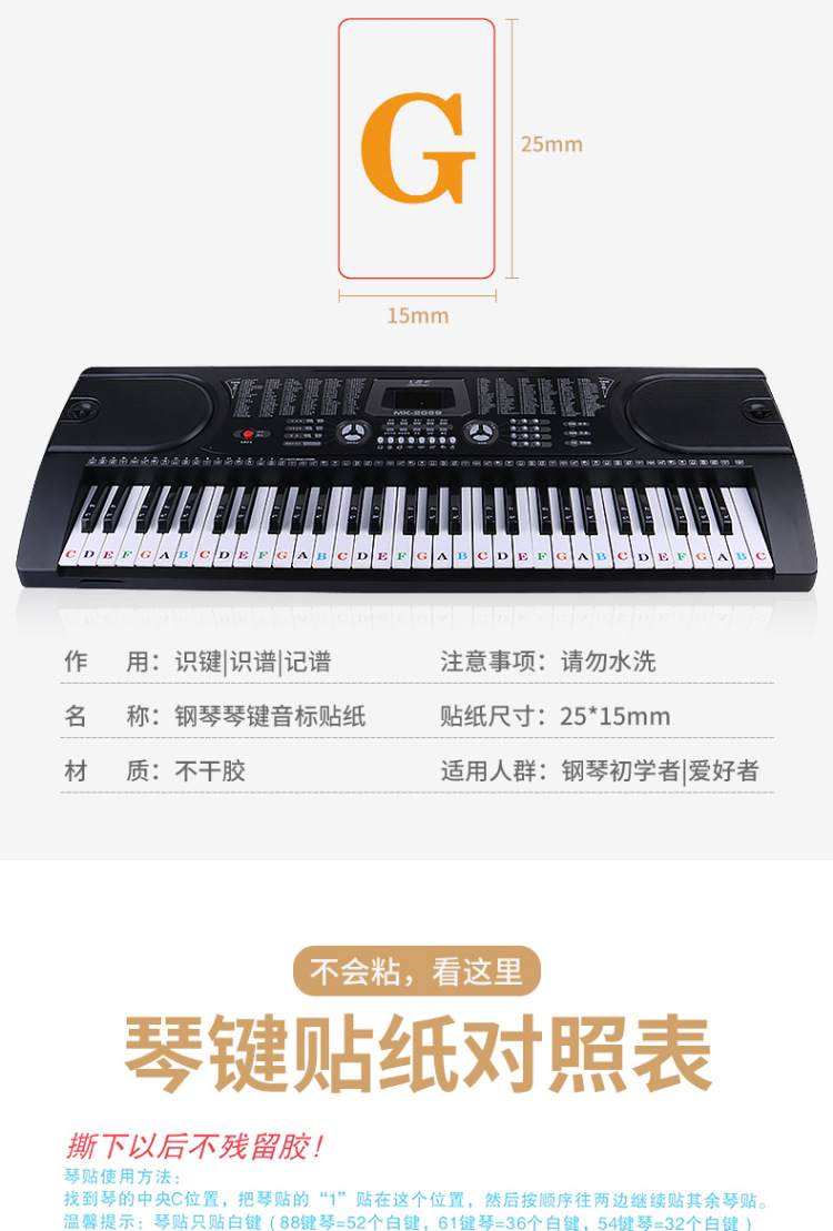 886154 키 유니버설 어린이 성인 피아노 전자 오르간 키보드 스티커 투명 5 라인 스펙트럼 간단한 학습 억양스토어 가기