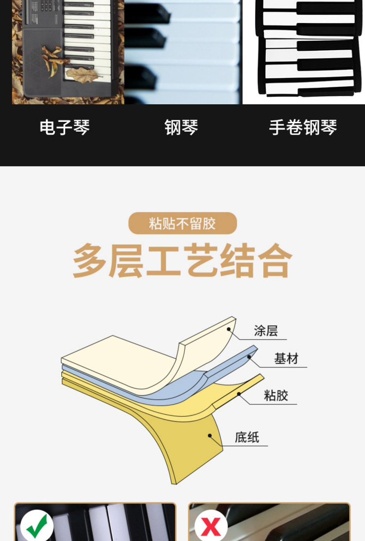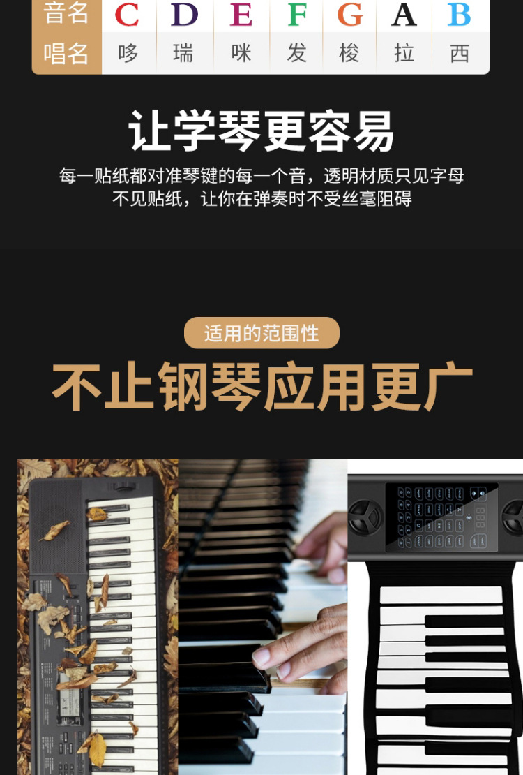 886154 키 유니버설 어린이 성인 피아노 전자 오르간 키보드 스티커 투명 5 라인 스펙트럼 간단한 학습 억양