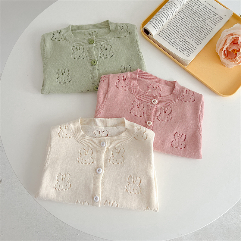 2024 남학생과 여학생을 위한 여름 스타일 니트 자외선 차단 가디건, 일본과 한국 스타일의 달콤한 토끼 긴팔 모기 방지 에어컨 탑