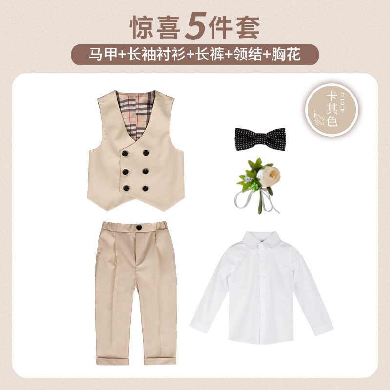 • [바지스타일] 카키 5종세트 (긴팔셔츠+조끼+바지+나비넥타이+코사지)