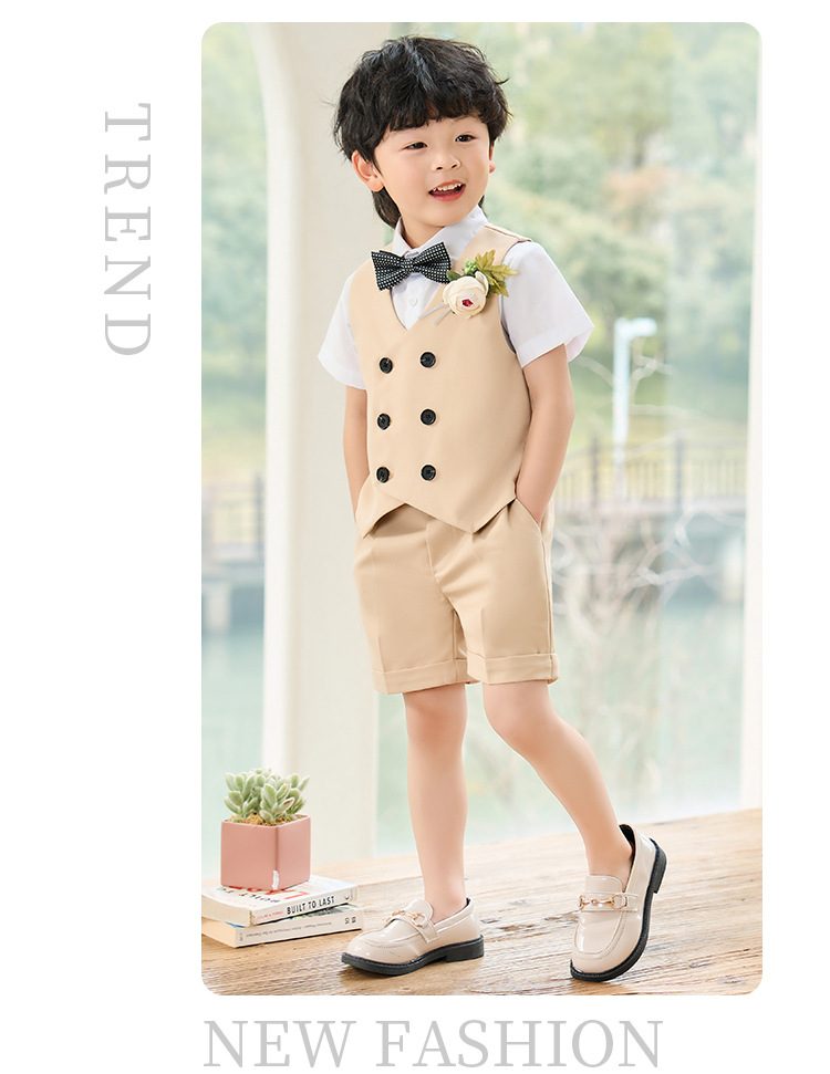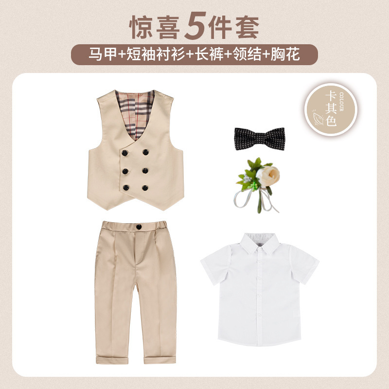 • [바지스타일] 카키 5종세트 (반팔셔츠+조끼+바지+나비넥타이+코사지)