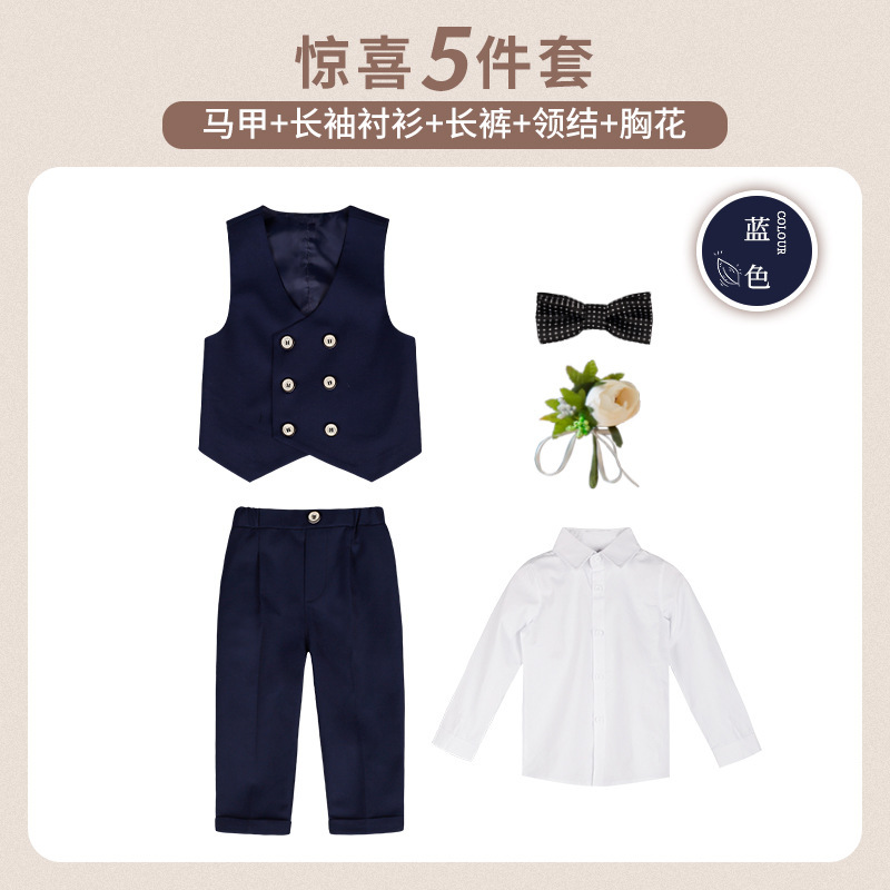 • [바지스타일] 네이비 5종세트 (긴팔셔츠+조끼+바지+나비넥타이+코사지)