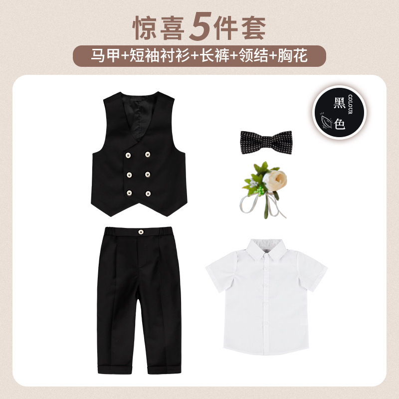 • [바지스타일] 블랙 5종세트 (반팔셔츠+조끼+바지+나비넥타이+코사지)