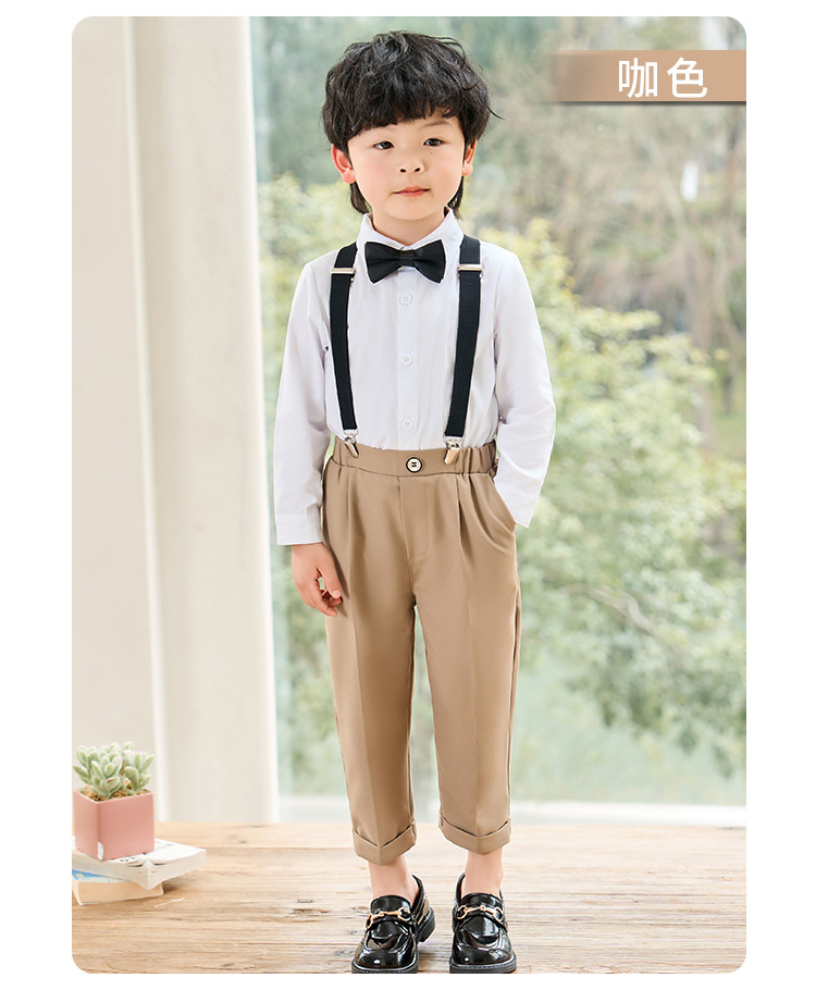 • 카멜 색상 긴팔 4종 세트 (긴팔 셔츠 + 긴바지 + 멜빵 + 보타이)