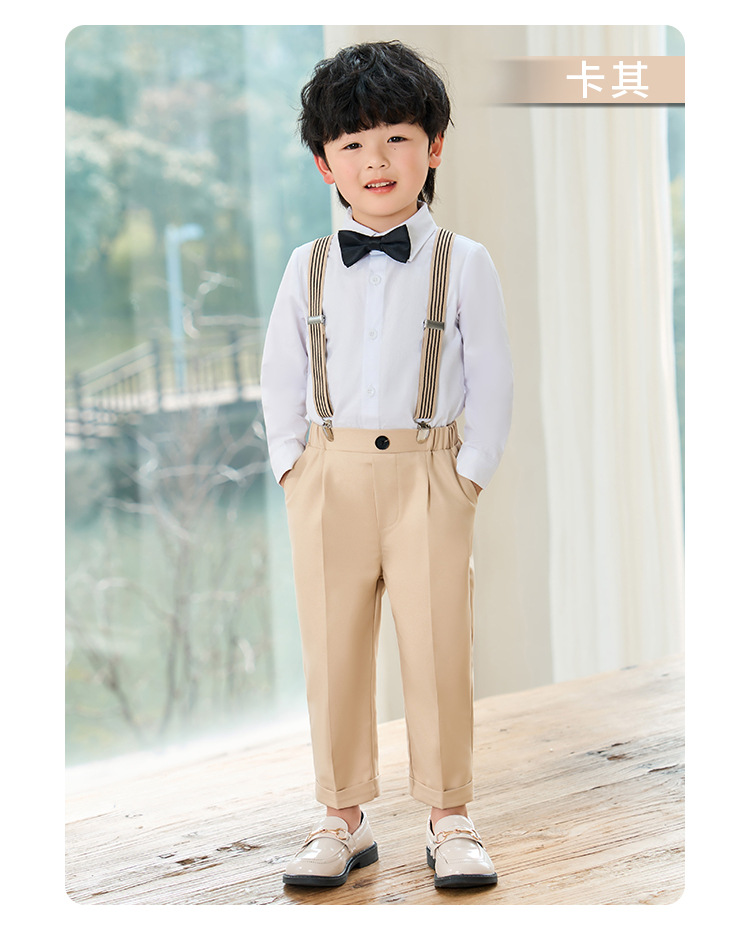 • 카키색 긴팔 4종 세트 (긴팔 셔츠 + 긴바지 + 멜빵 + 보타이)