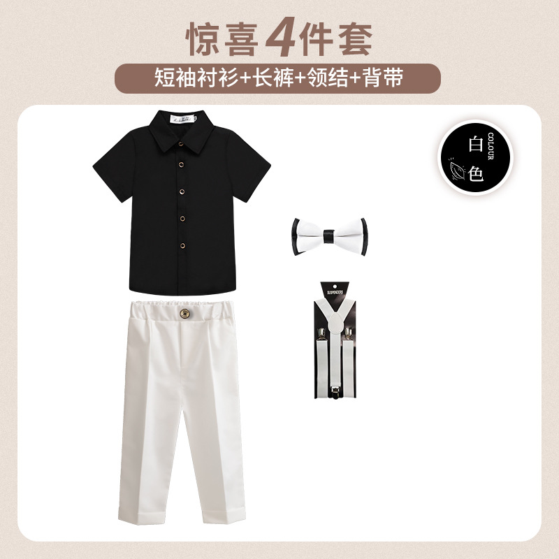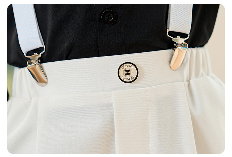 • 흰색 반팔 4종 세트 (반팔 셔츠 + 긴바지 + 멜빵 + 보타이)