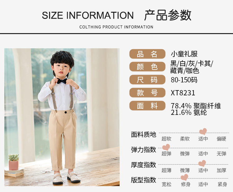 어린이 원피스 봄과 여름 한국어 단색 멜빵 바지 소년 캐주얼 셔츠 세트 아기 생일 사진 옷스토어 가기
