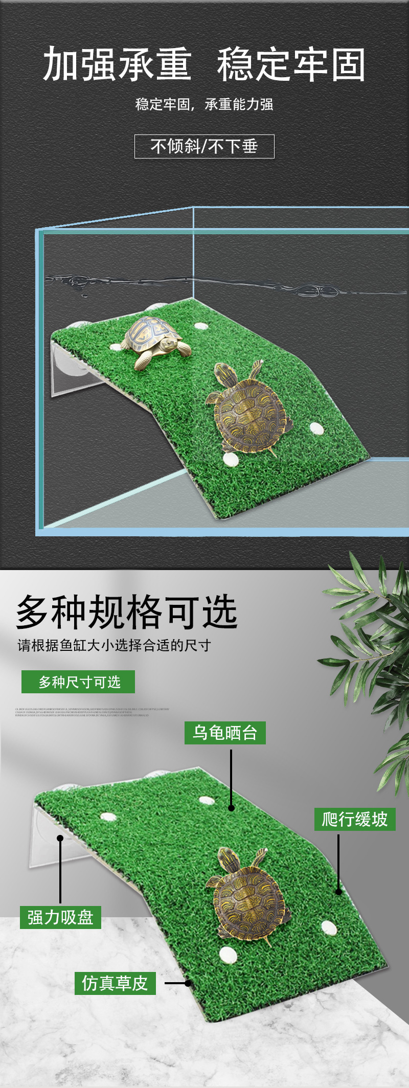 수조 시뮬레이션 잔디 거북이 태양대 수족관 수조 거북이 등반대 공급 흡입 컵 거북이 등반대 태양대스토어 가기