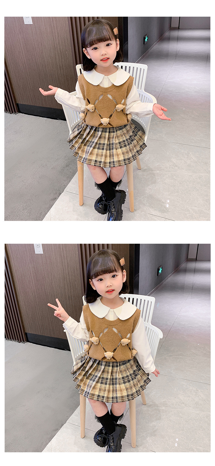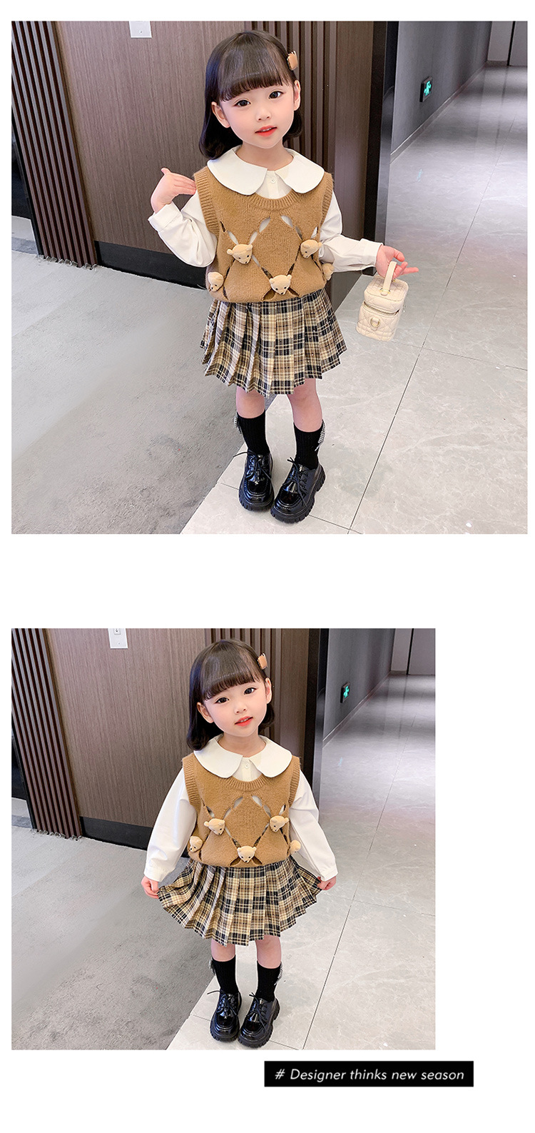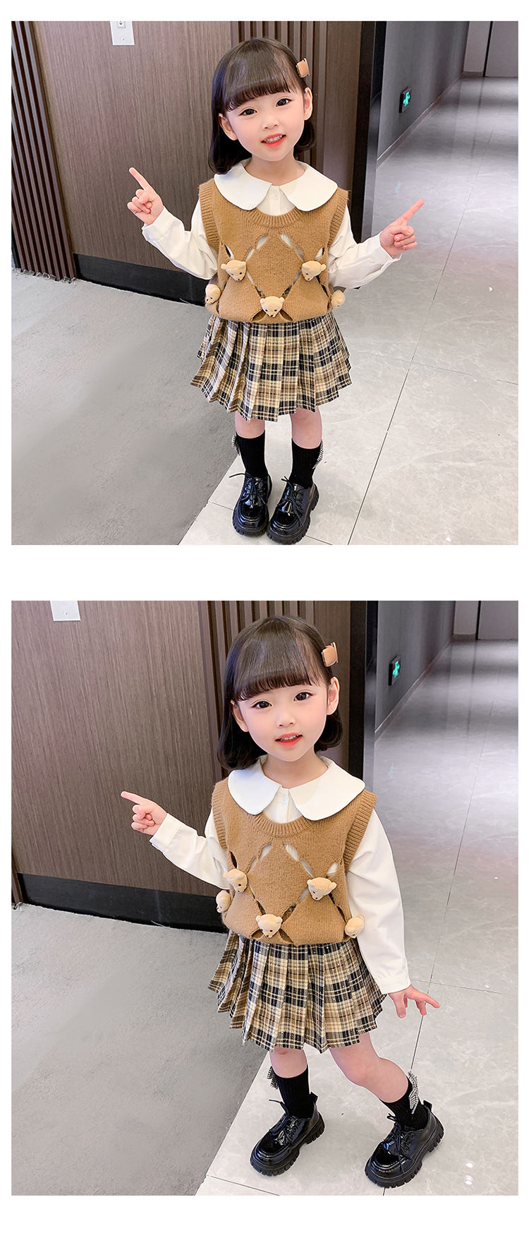 여아용 곰돌이 조끼 3종 세트 2025 봄 가을 신상 여아 패션 세트 유아동복 트렌디스토어 가기