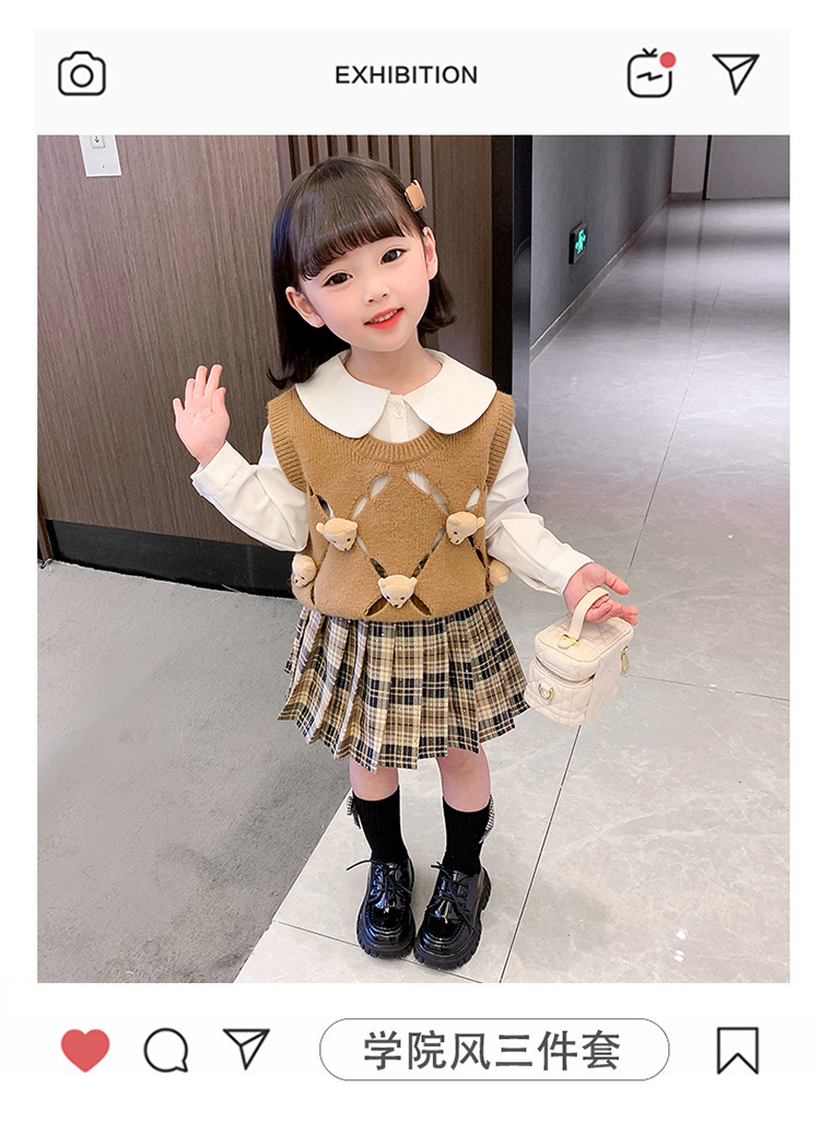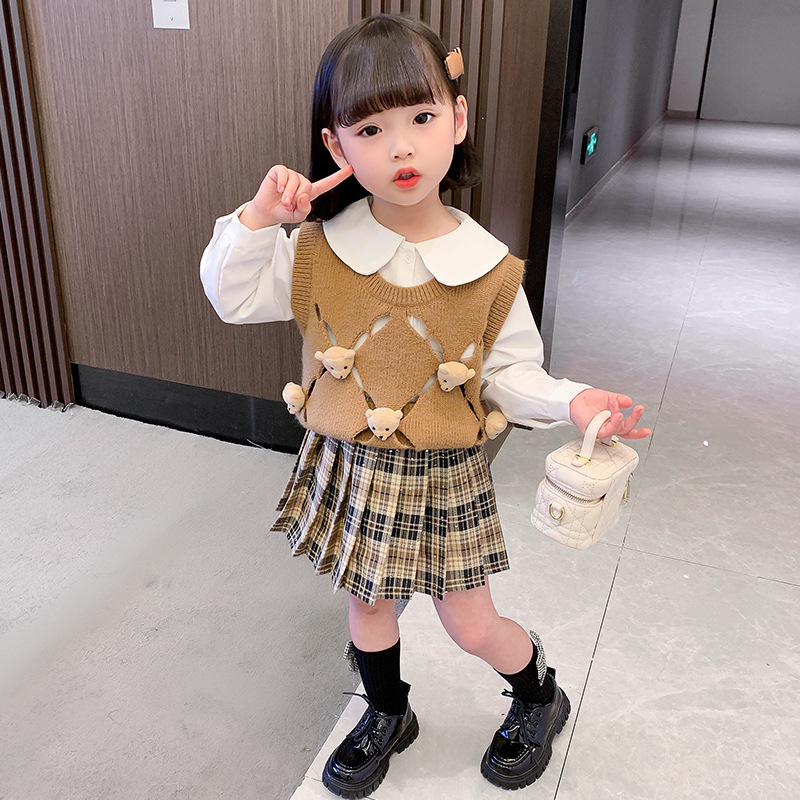 여아용 곰돌이 조끼 3종 세트 2025 봄 가을 신상 여아 패션 세트 유아동복 트렌디
