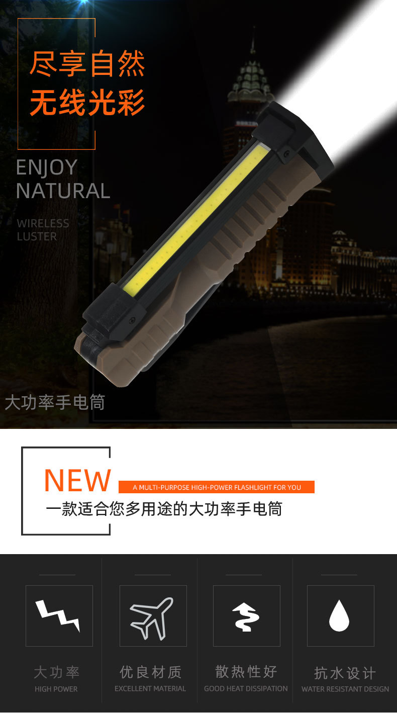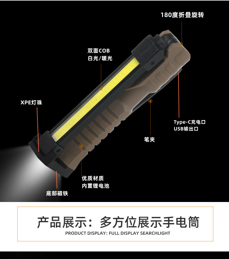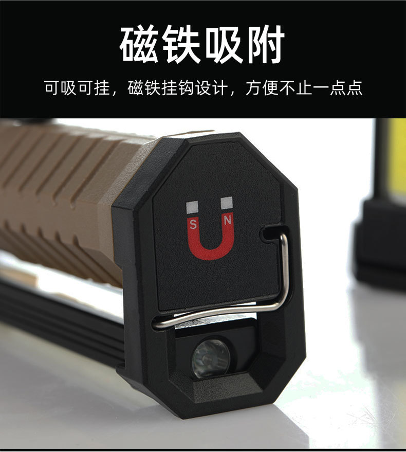강력한 빛 손전등, 매우 밝은 COB 접이식 작업등, 충전식 휴대용 후크, 자석 부착 점검등, 적색 경고등스토어 가기