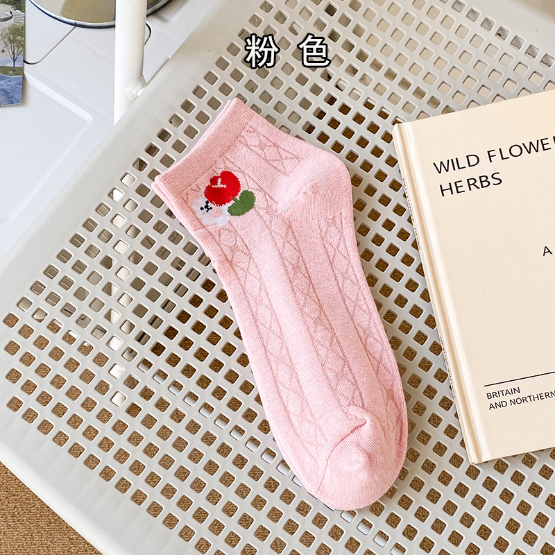 양말 여성용 봄과 여름 핑크 대학 스타일 여성용 보트 양말 컬러 매칭 짧은 튜브 플로렛 여성용 양말 여성용 면 땀 흡수 양말스토어 가기