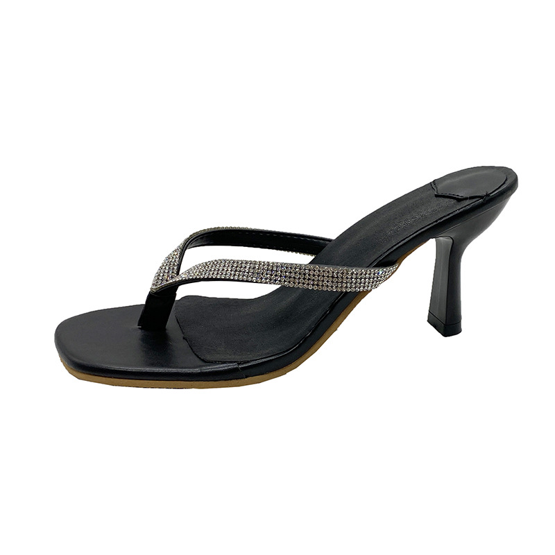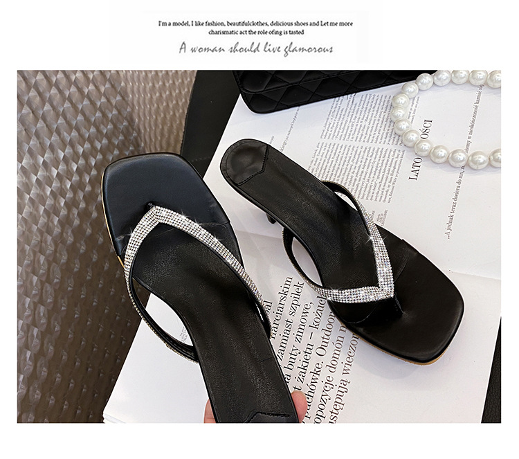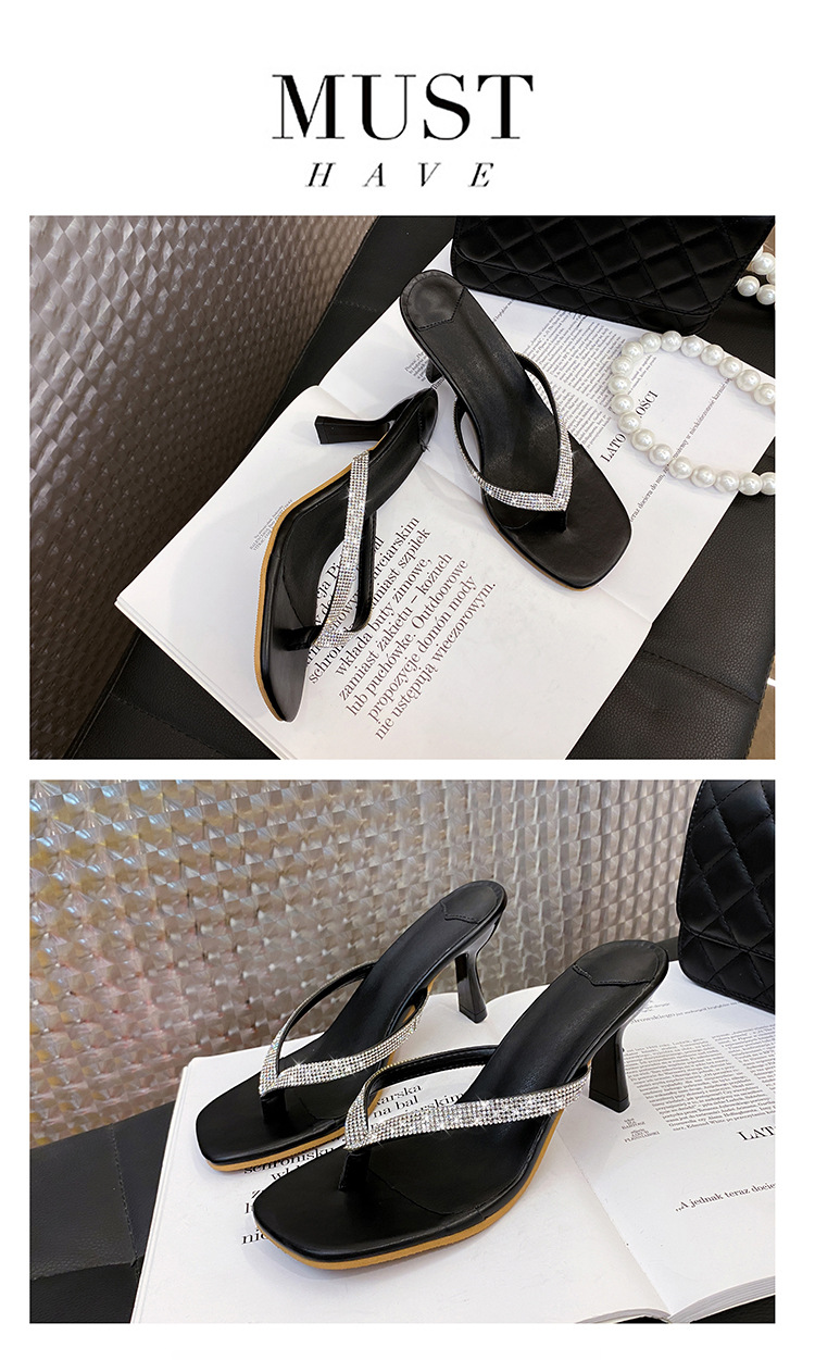 얇은 굽 플립 플롭 한국식 라인 석 샌들 플립 플롭 섹시한 얇은 힐 스퀘어 헤드 아웃웨어 여름 하이힐 샌들 여성용