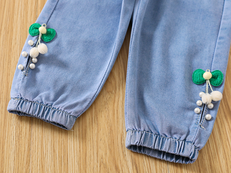 여아 텐셀 청바지 여름 새 어린이 발목 길이 바지 아기 소녀를위한 얇은 쿨 통기성 모기 방지 바지스토어 가기
