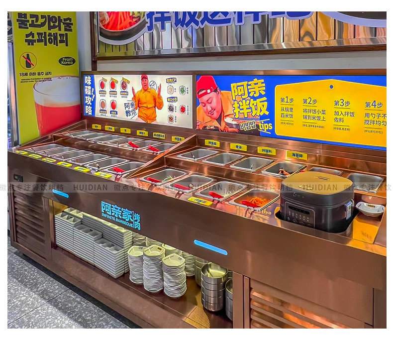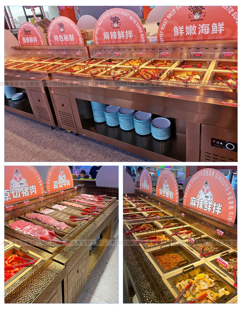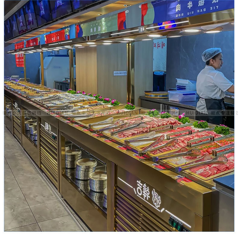 맞춤형 한국식 바베큐 레스토랑 냉장 디스플레이 캐비닛 뷔페 냉동고 3단 얼음 테이블 전골 스프레이 냉동고 상업용스토어 가기