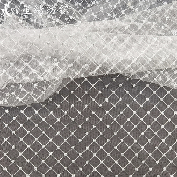 나일론 강화 메쉬 자수 직물 크로스 매화 구슬 다이아몬드 격자 무늬 자수 여성 의류 아동복 신발 가방 DIY 원단