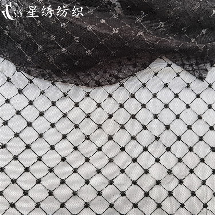 나일론 강화 메쉬 자수 직물 크로스 매화 구슬 다이아몬드 격자 무늬 자수 여성 의류 아동복 신발 가방 DIY 원단스토어 가기