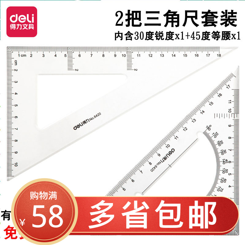델리 6420 삼각형 대형 삼각형 플라스틱 투명 통치자 세트 18cm 드로잉 통치자 2 세트스토어 가기