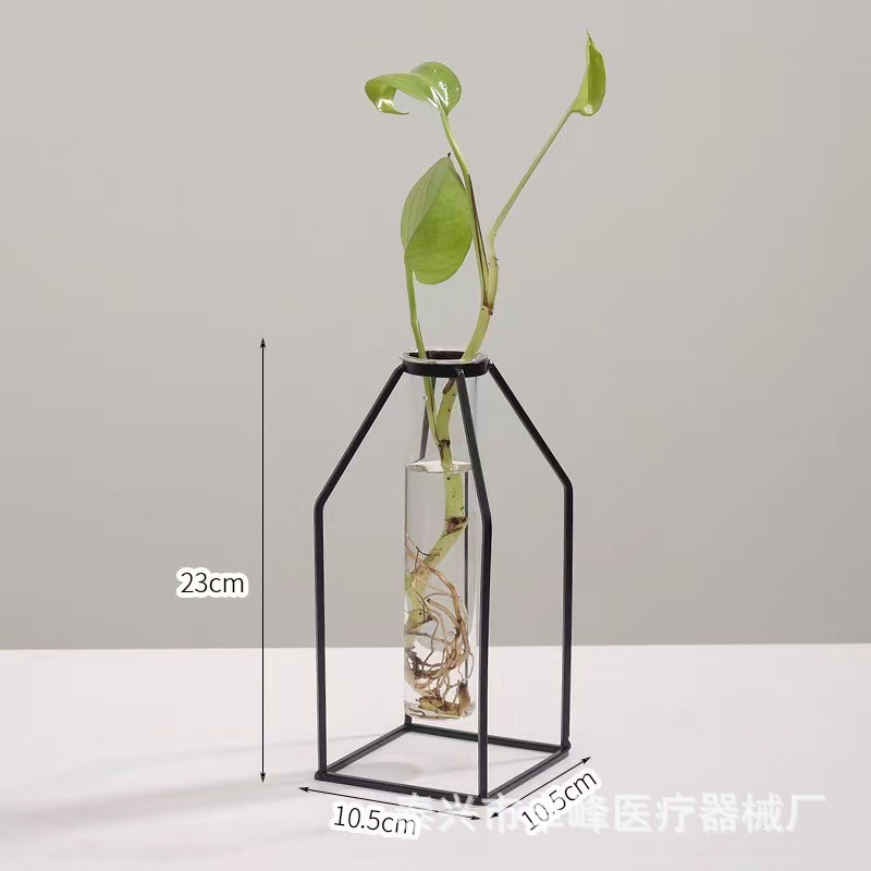 현대 간단한 빛 럭셔리 기하학적 사각형 바닥 투명 유리 수경 꽃병 장식품 말린 꽃 장식 가구 장식
