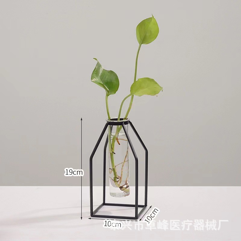 현대 간단한 빛 럭셔리 기하학적 사각형 바닥 투명 유리 수경 꽃병 장식품 말린 꽃 장식 가구 장식스토어 가기
