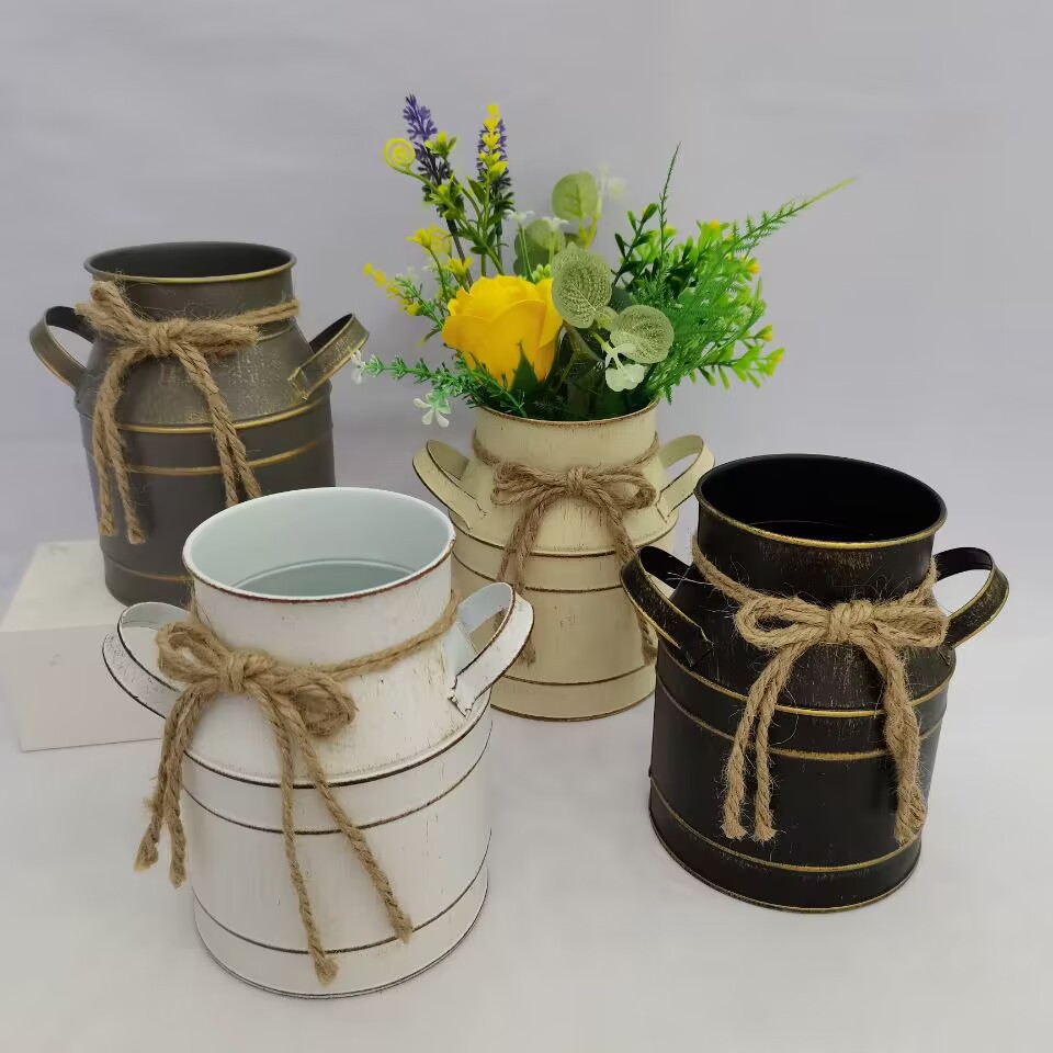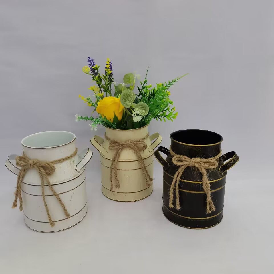 재고 공급 아연 도금 철 물 누출 방지 우유 캔 주석 양동이 원예 꽃병 홈 거실 장식 장식품