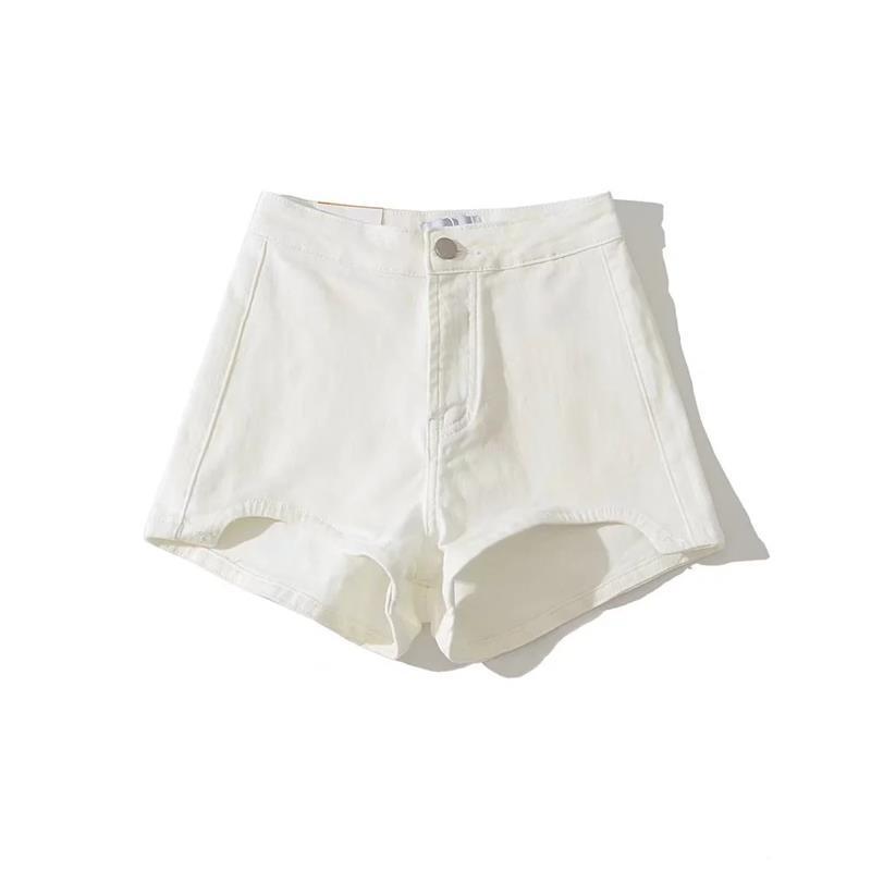 불규칙한 하이 웨이스트 데님 반바지 다리를 보여주는 뜨거운 소녀 긴 꽉 엉덩이 데님 뜨거운 바지 여자의 엉덩이 반바지 여름