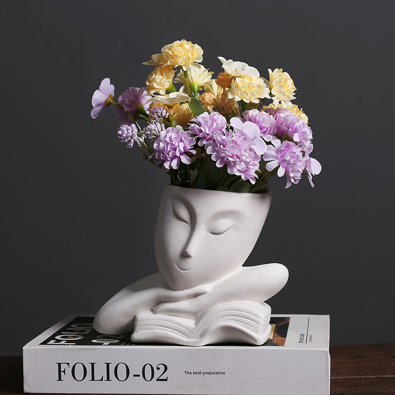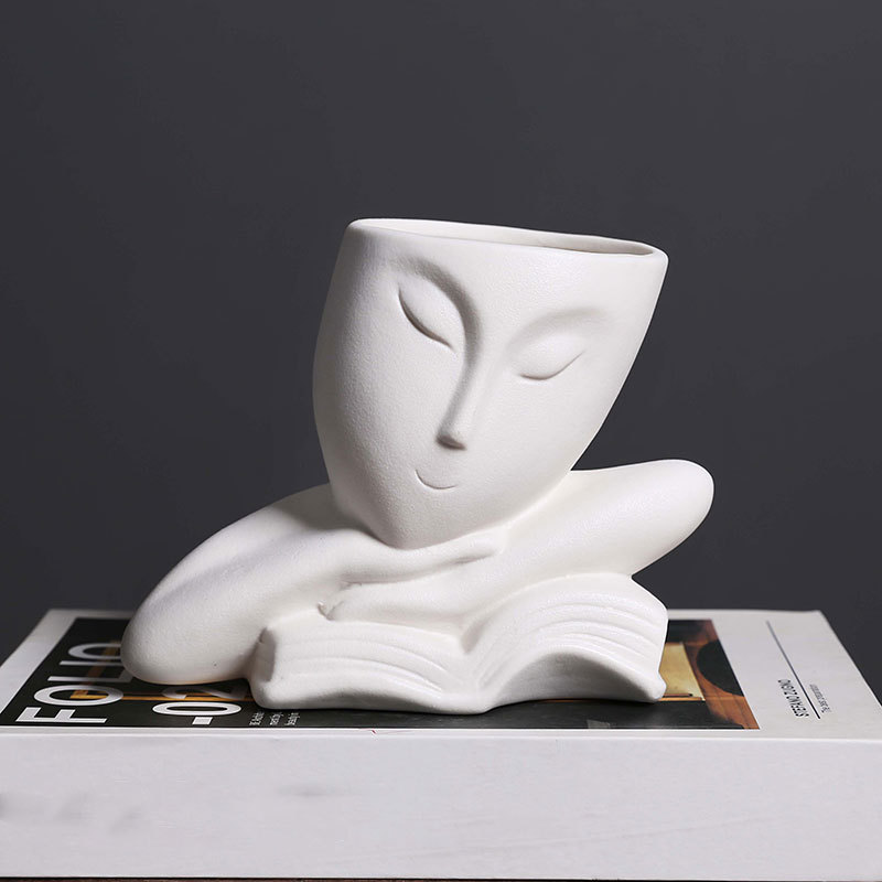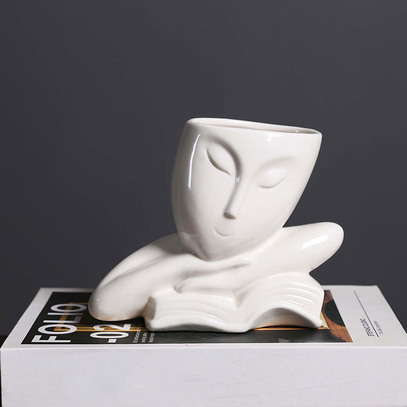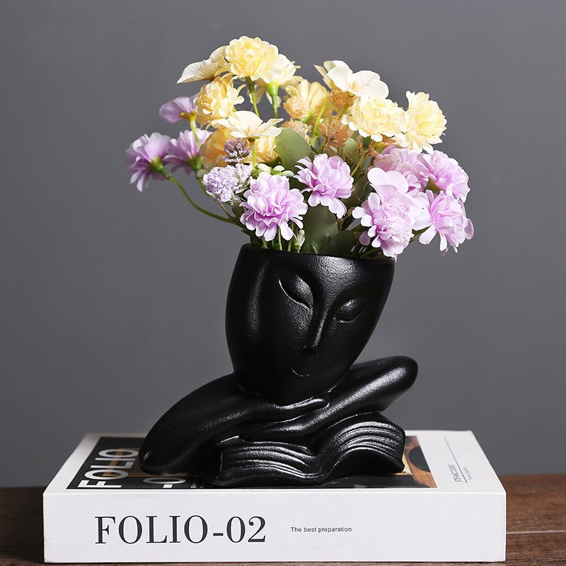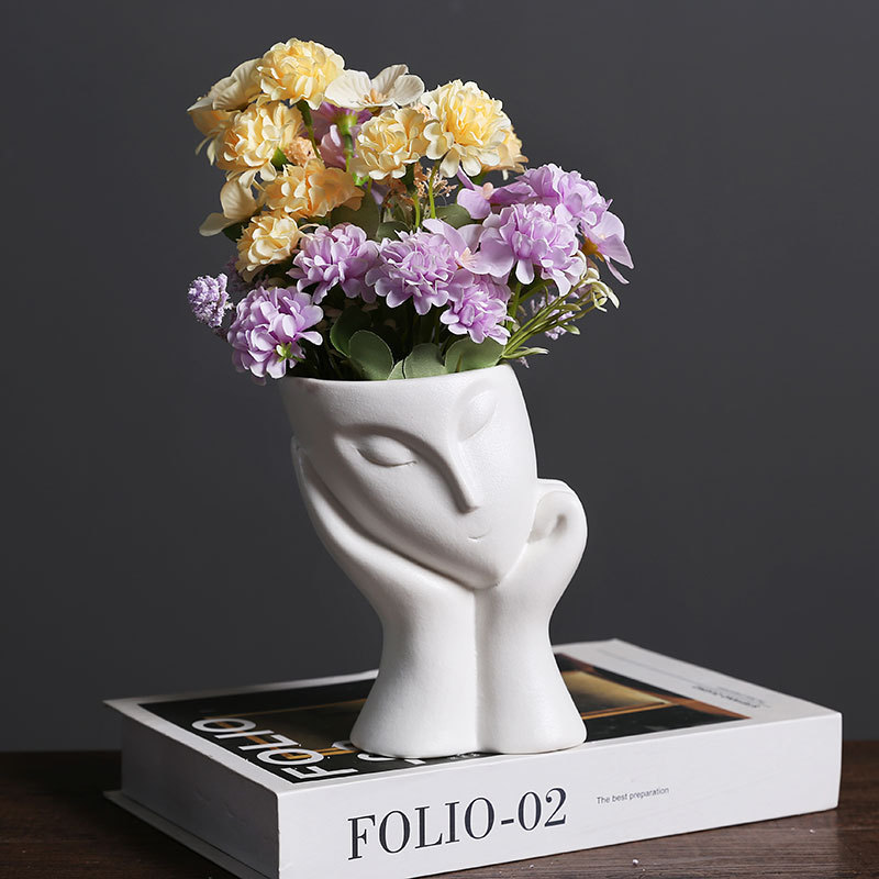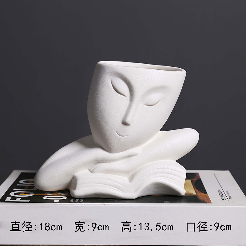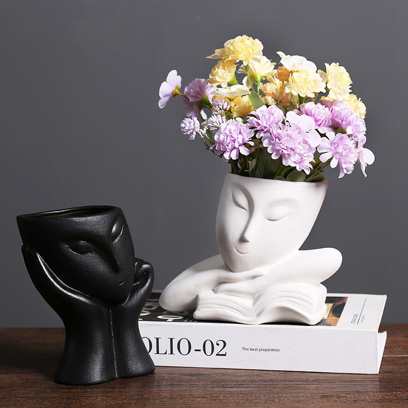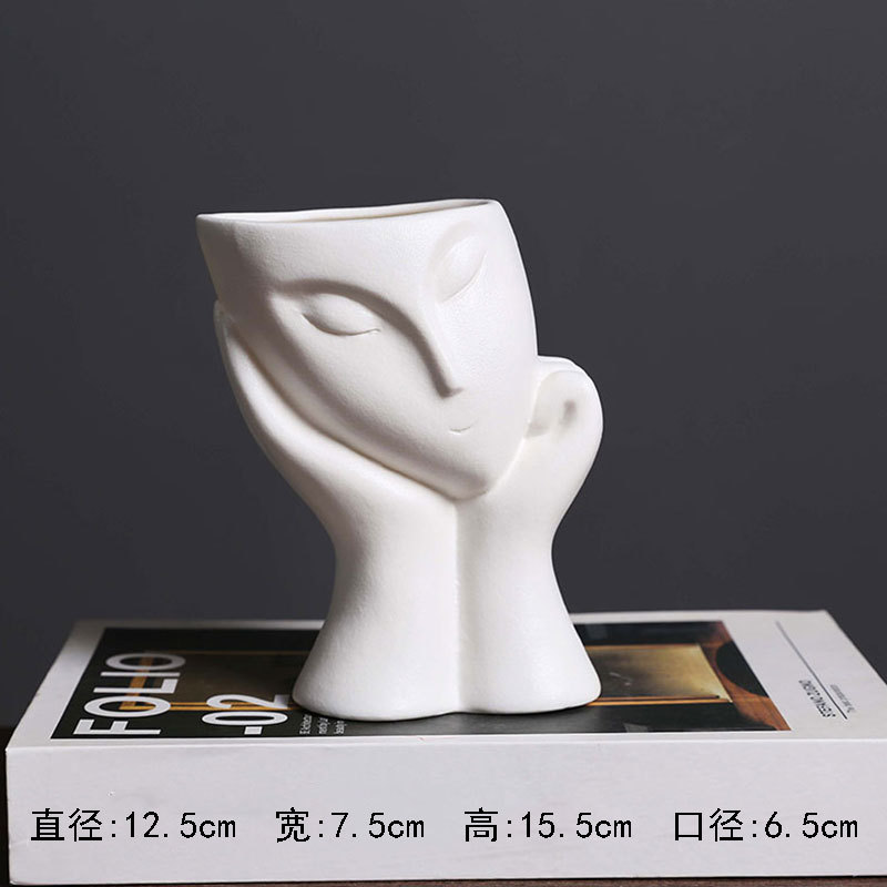 인체 세라믹 꽃병 북유럽 인 얼굴 소녀 세라믹 화분 수경 꽃병 꽃 삽입 데스크탑 장식품 크로스 보더