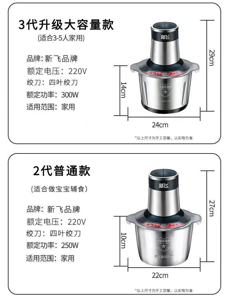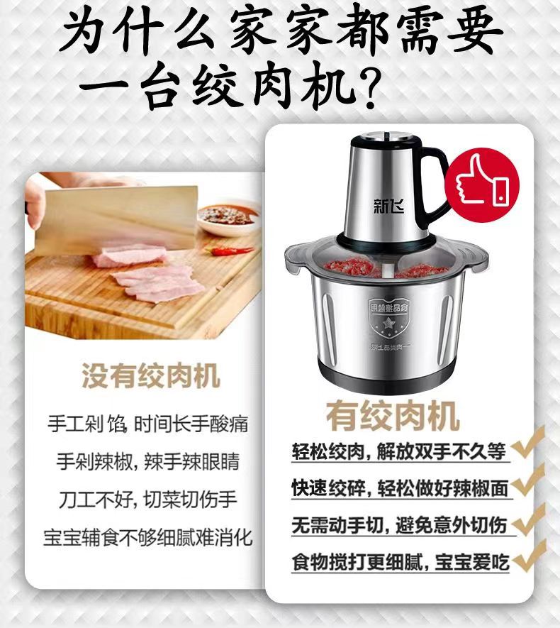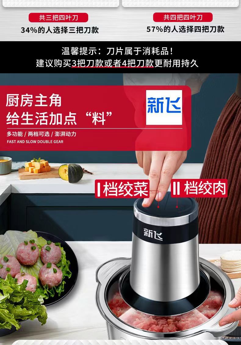 Xinfei 고기 분쇄기 다기능 절단 야채, 다진 고기와 다진 마늘 채우기 다기능 올인원 기계 가정용 스테인레스 스틸 조리 기계스토어 가기