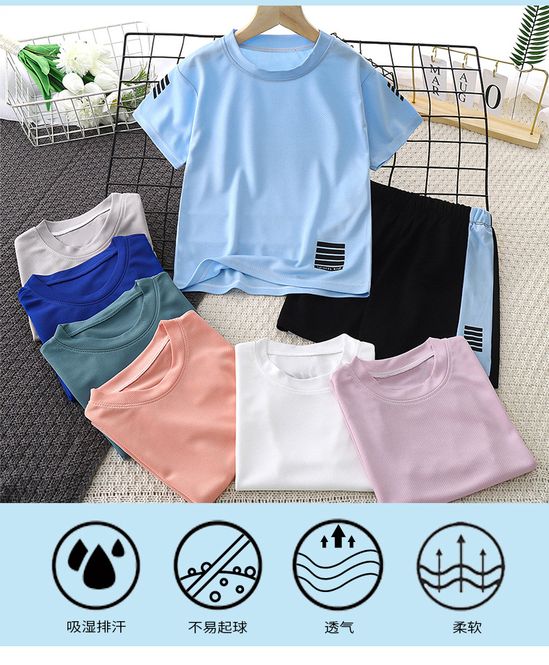 여름 아동 속건 의류 남아 정장 2025 새로운 스타일의 멋지고 트렌디한 중대형 아동 반팔 여름 스포츠 투피스 세트