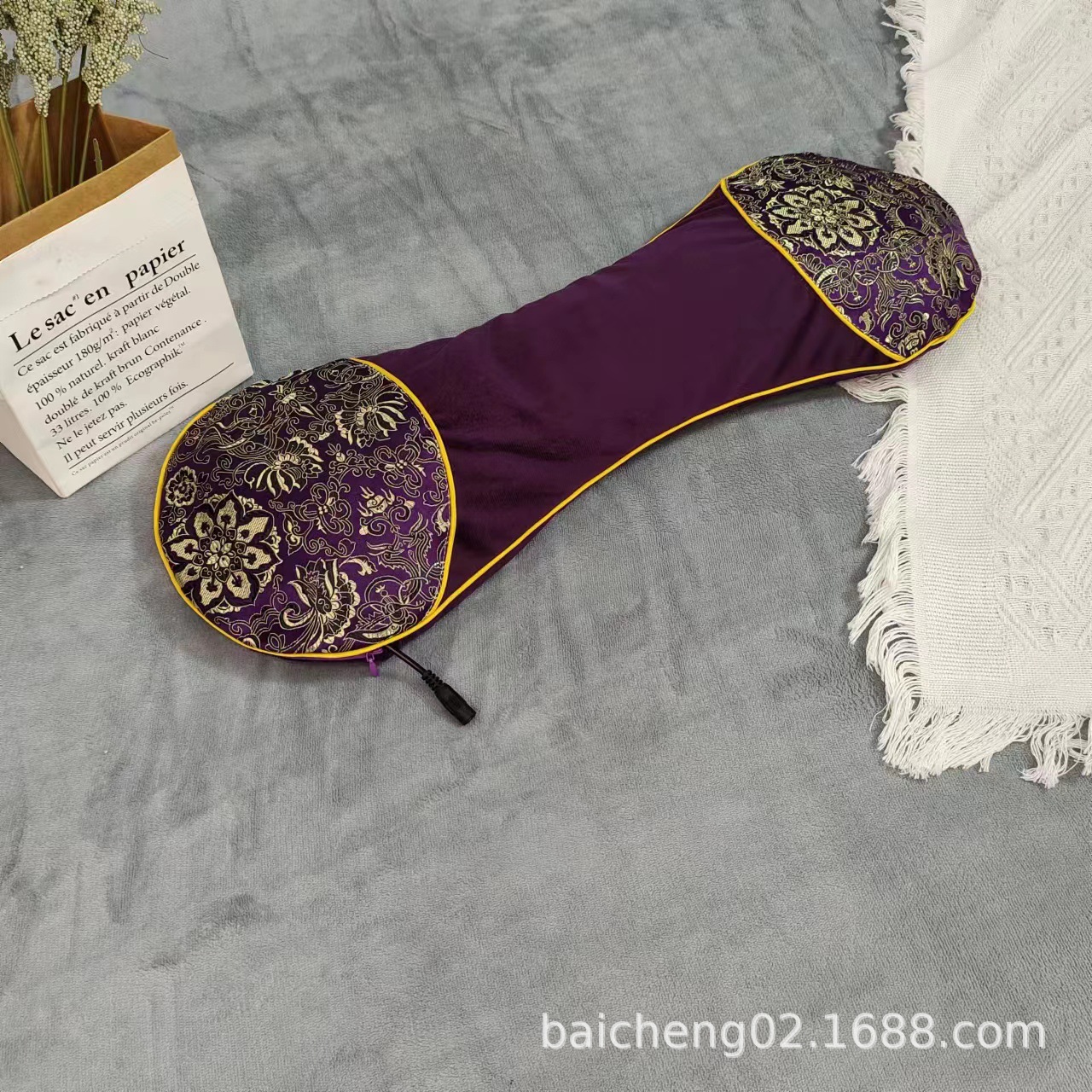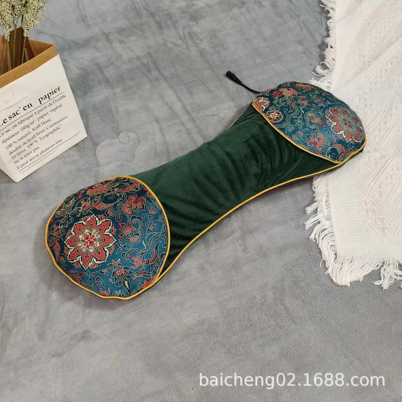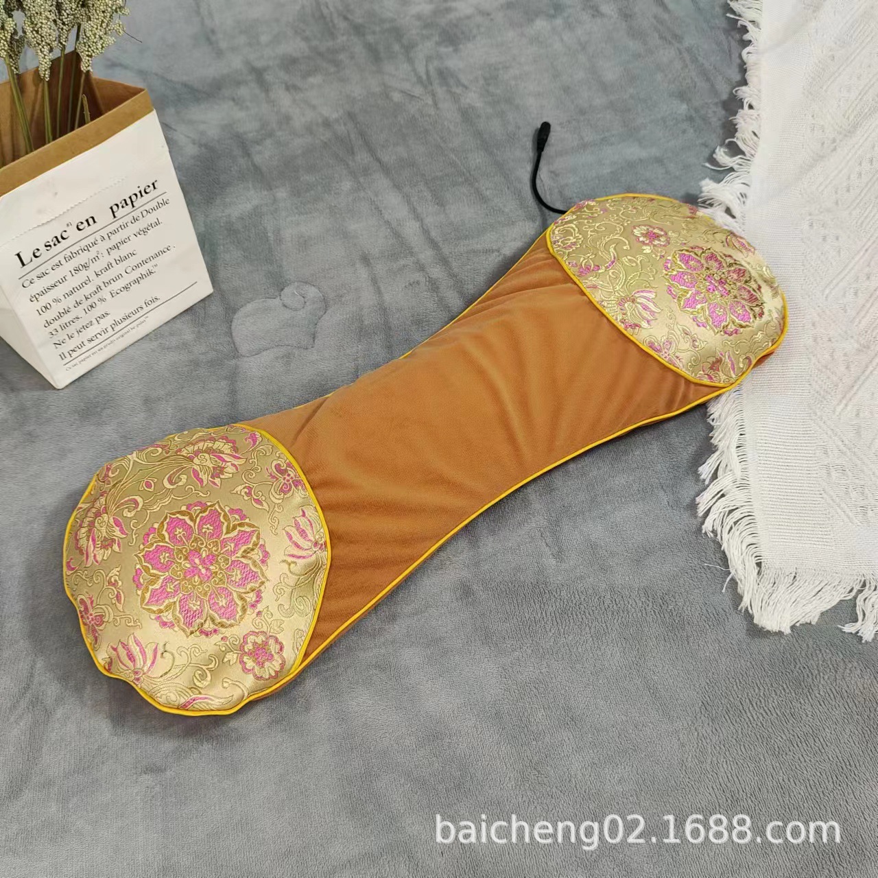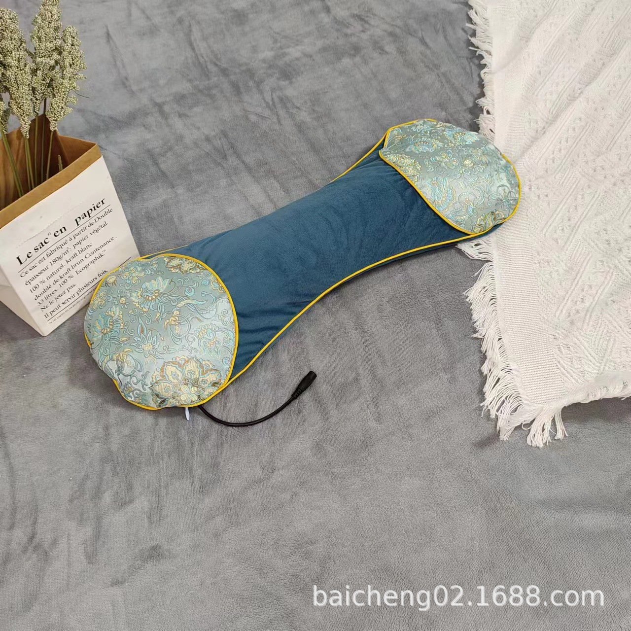 天鹅绒拼接枕尺寸为22*57cm