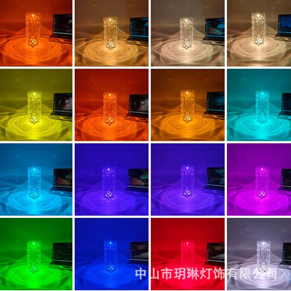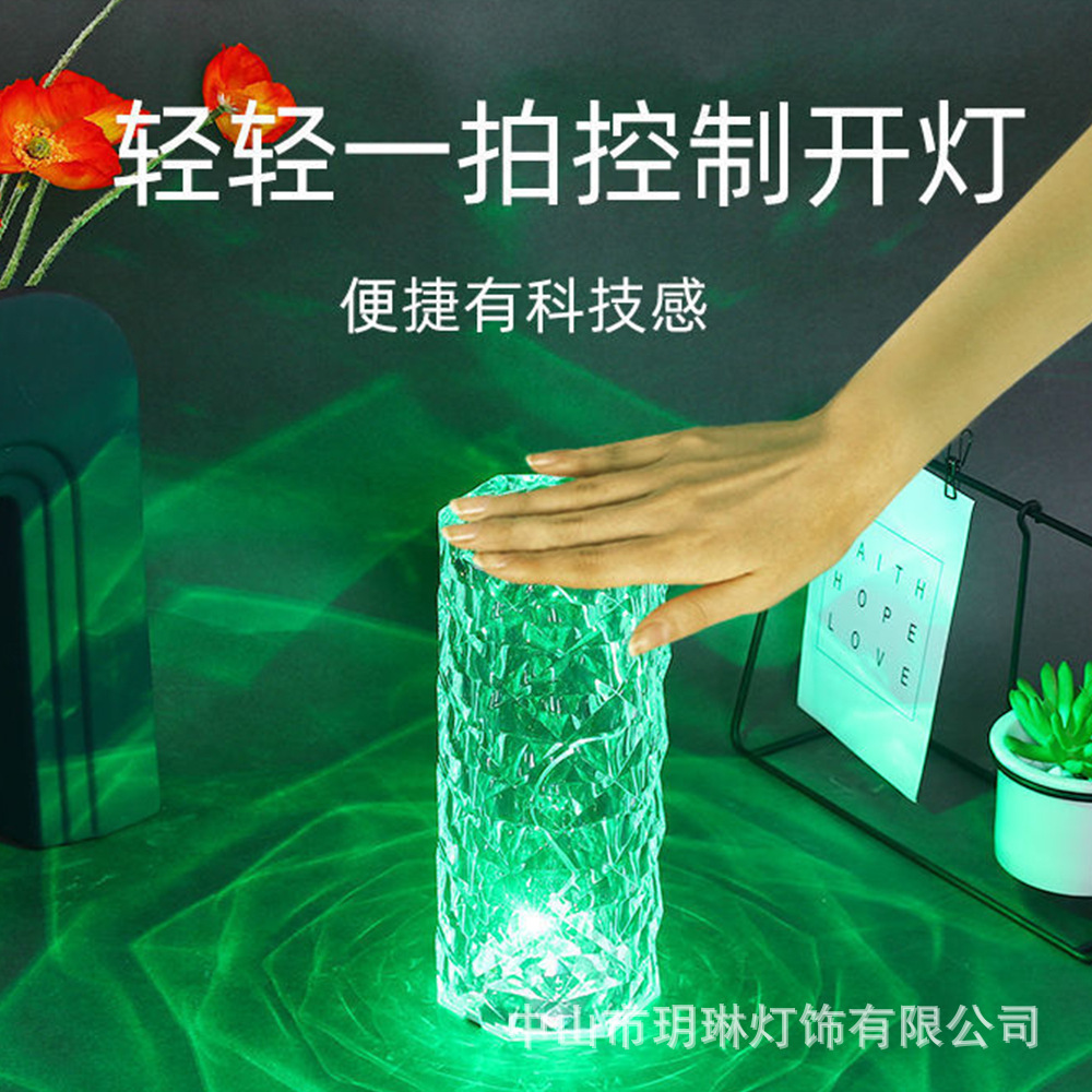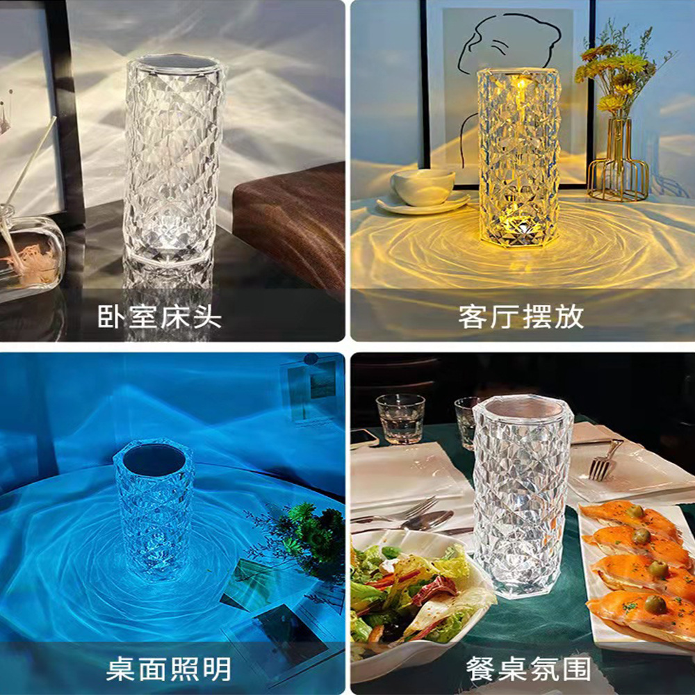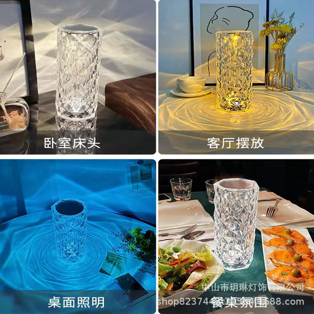 장미 램프 분위기 램프 크리스탈 테이블 램프 LED 터치 장식 물방울 크리스탈 침대 옆 장식 램프 USB 충전 테이블 램프스토어 가기