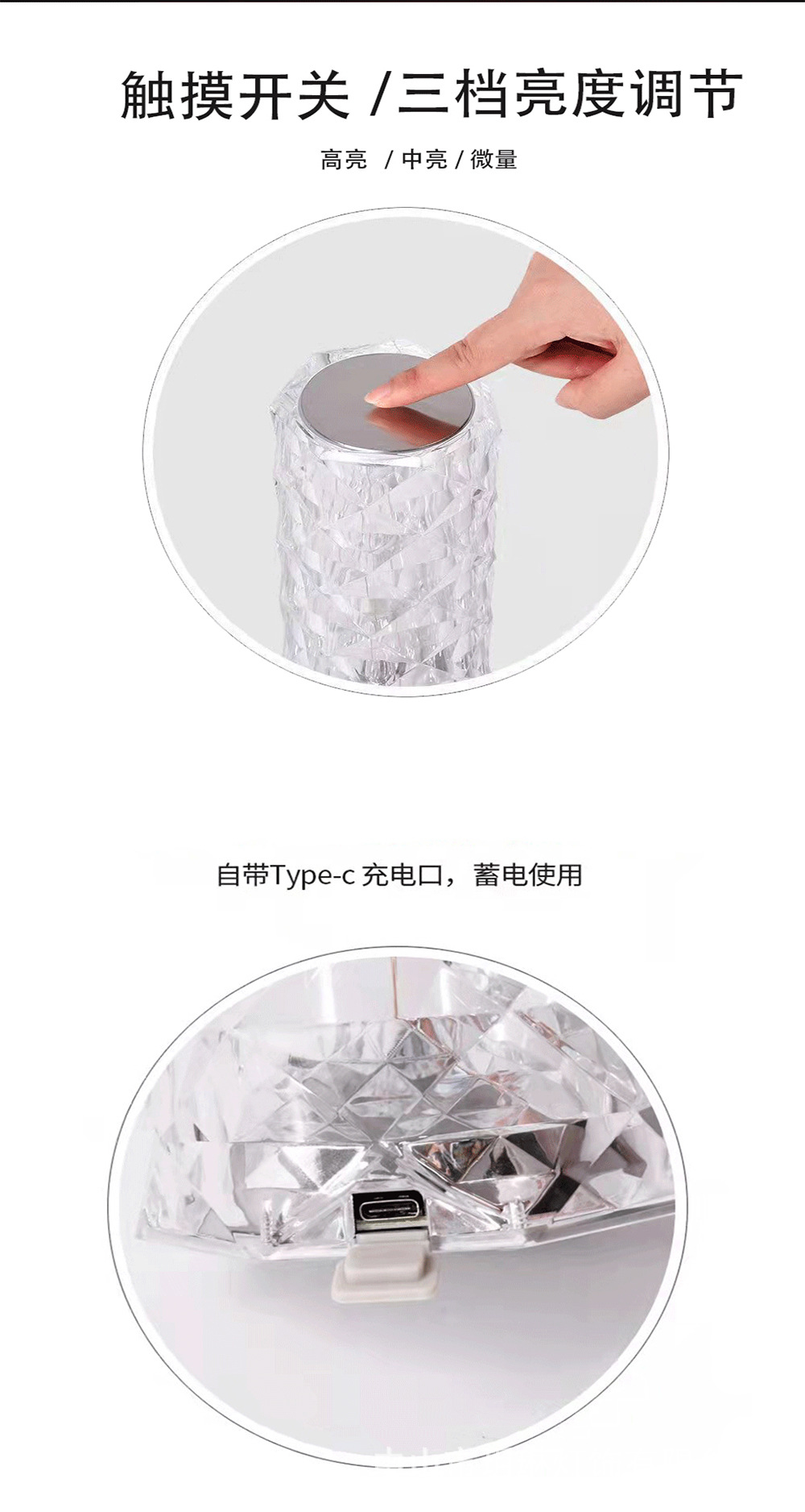 장미 램프 분위기 램프 크리스탈 테이블 램프 LED 터치 장식 물방울 크리스탈 침대 옆 장식 램프 USB 충전 테이블 램프